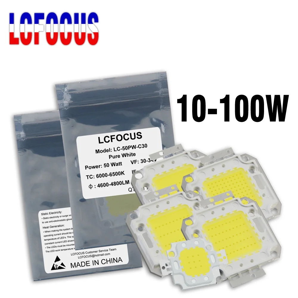Светодиодный чип COB высокой мощности, 10 Вт, 20 Вт, 30 Вт, 50 Вт, 100 Вт, теплый естественный Чистый Белый Свет для самостоятельной сборки 10, 20, 30, 50, 100 Вт, уличный светодиодный светильник для еды