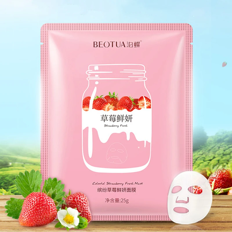 Красочная Клубничная маска с экстрактом клубники для пополнения влаги кожи и улучшения сияния кожи.