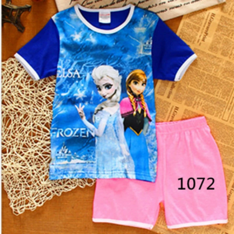 Летний комплект детской одежды для мальчиков, пижама Холодное сердце для маленьких девочек, детская одежда для сна с коротким рукавом, пижама Человек-паук, комплект из топа и брюк, 2 шт.компл.