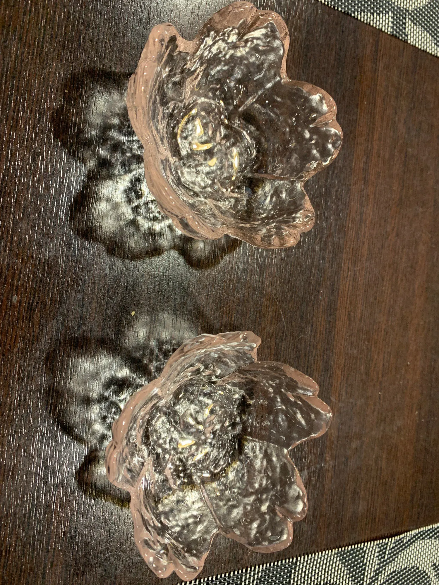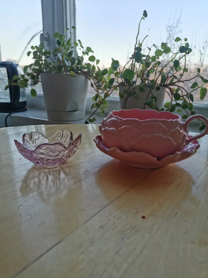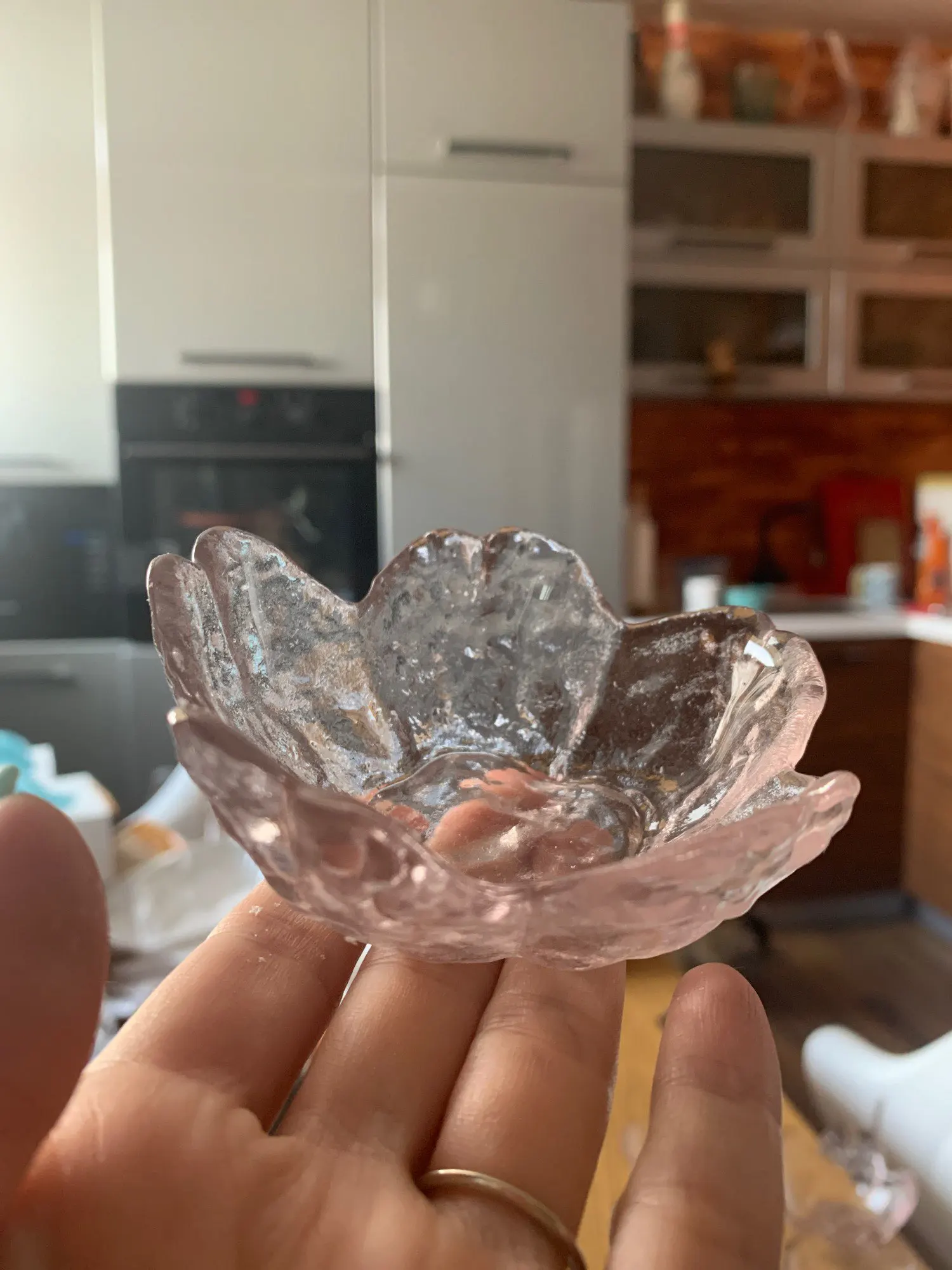 Прекрасные небольшие розетки, подходящие для ложки варенья или соусов нежно-розового цвета. Заказывала 4 штуки, одна не доехала, раскололась по дороге, хотя упаковано было очень тщательно: и в пупырчатую пленку, и в пенопласт, и в толстую коробку.
