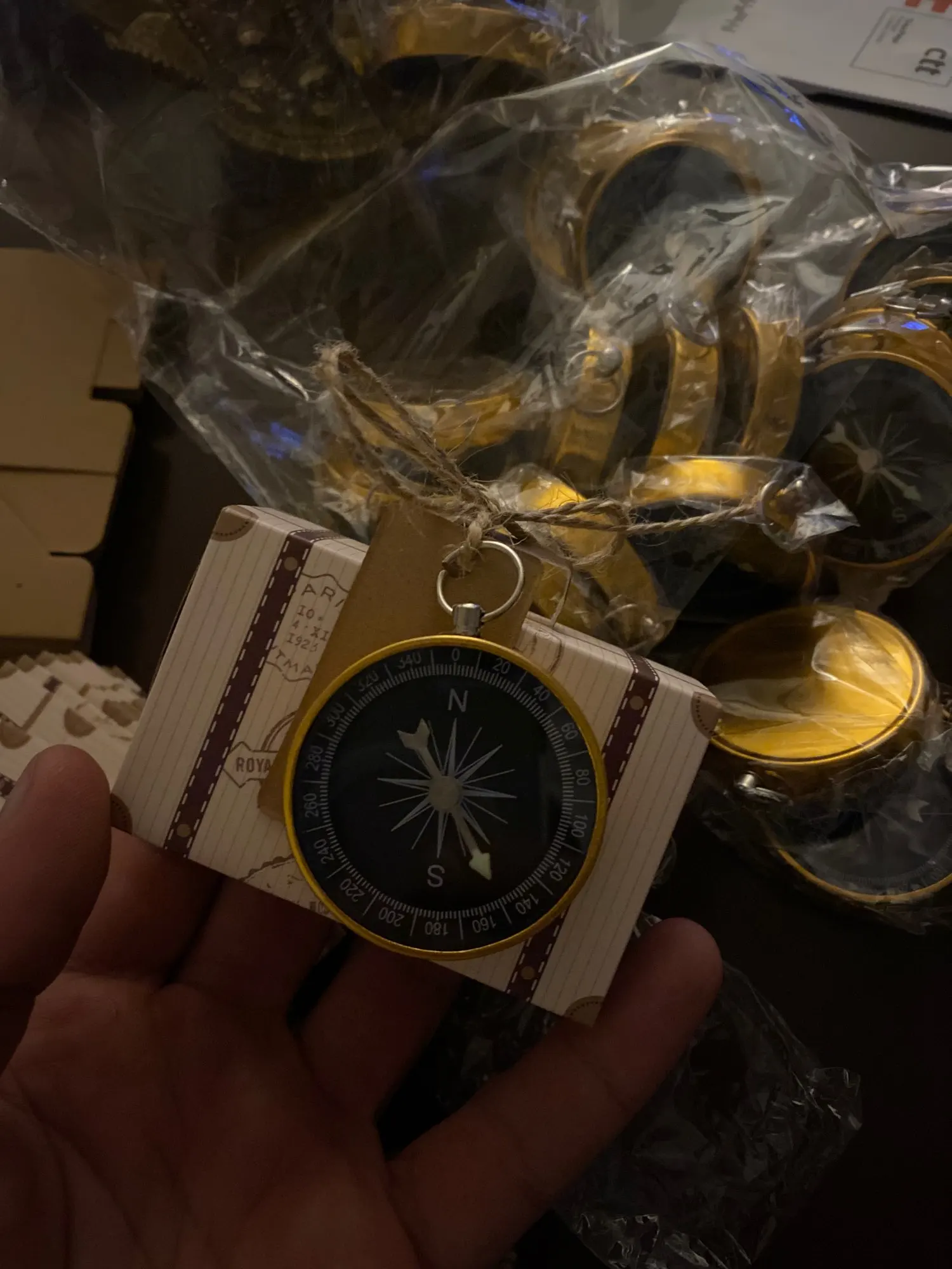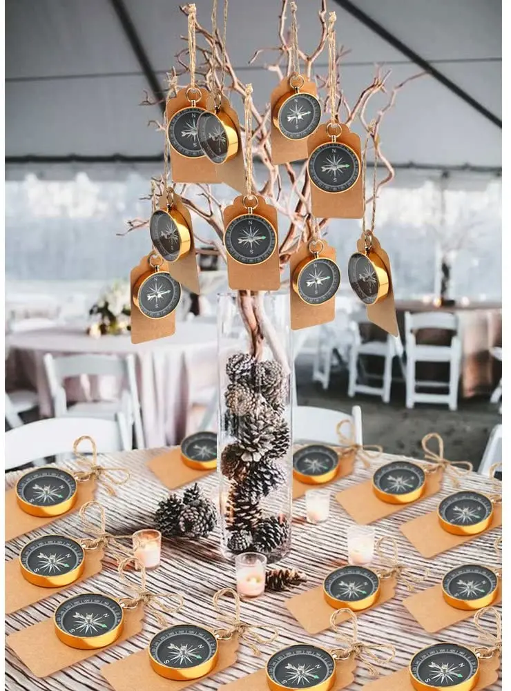 Мини-Компас изготовлен из алюминиевого сплава, прочный и долговечный. Богатый изысканный вид с золотой и черной отделкой, идеально подходит для тематика путешествий вечерние сувениры и декор стола