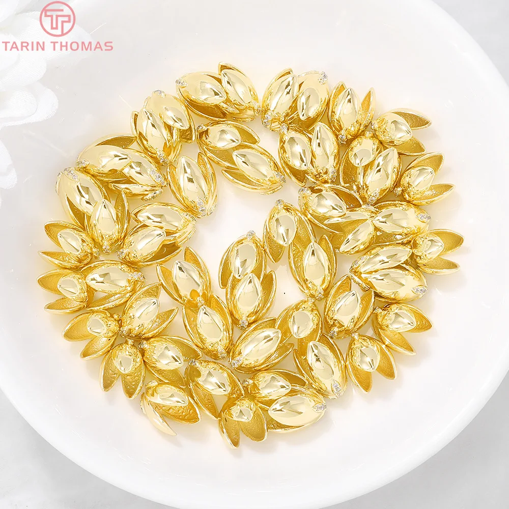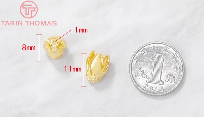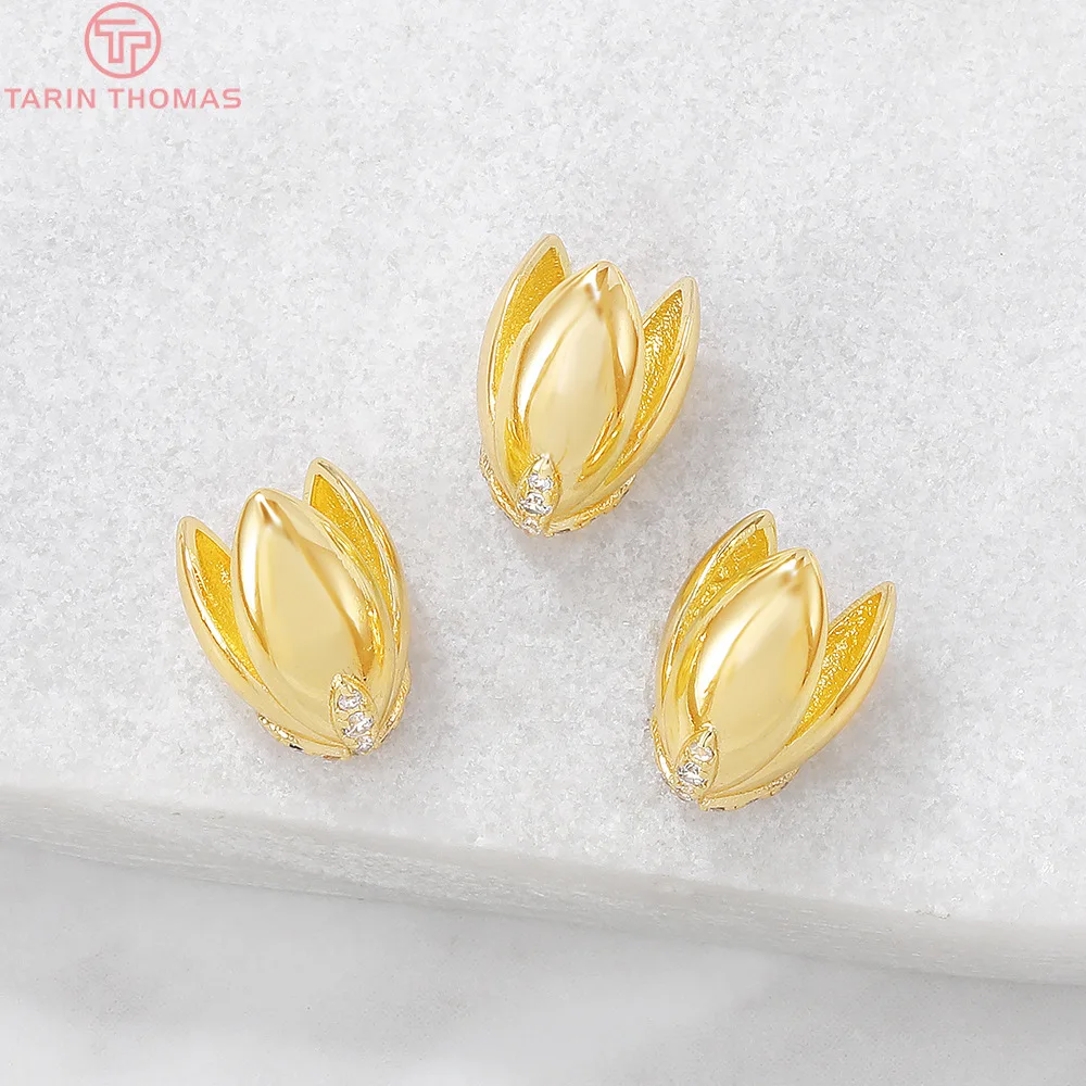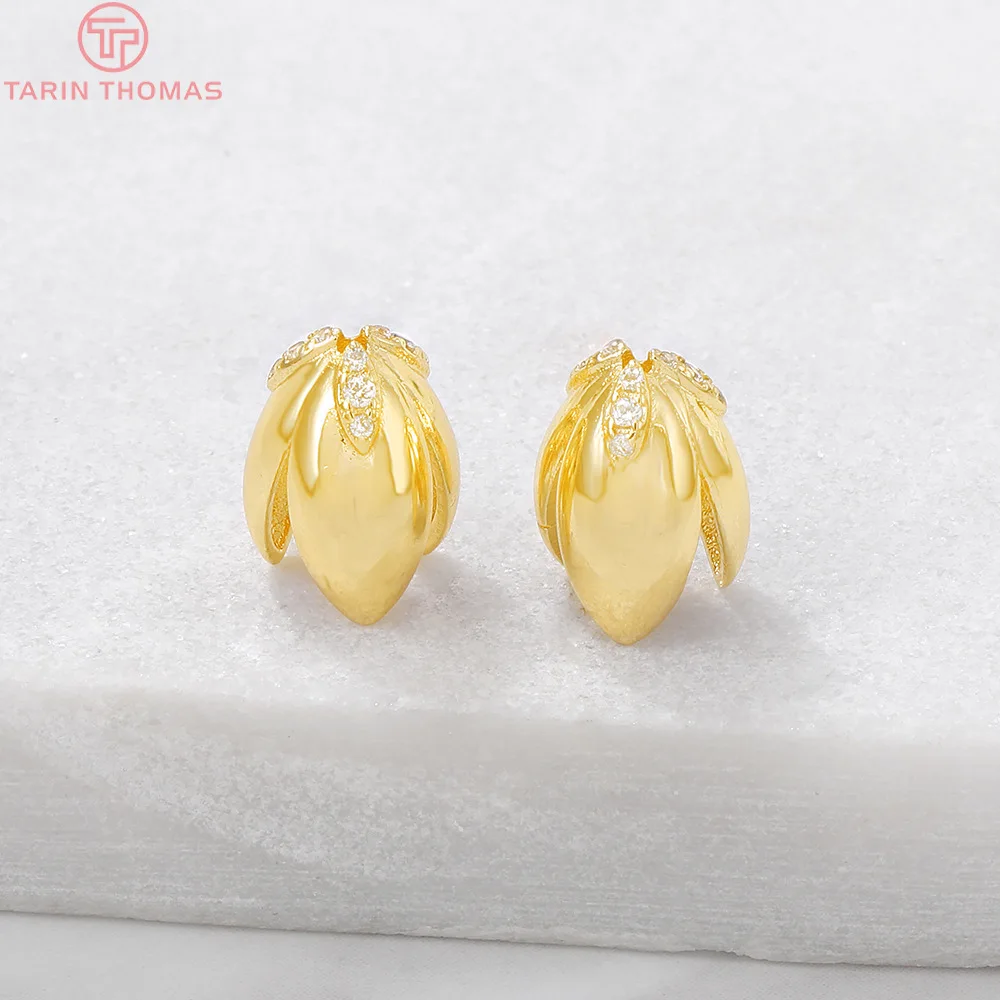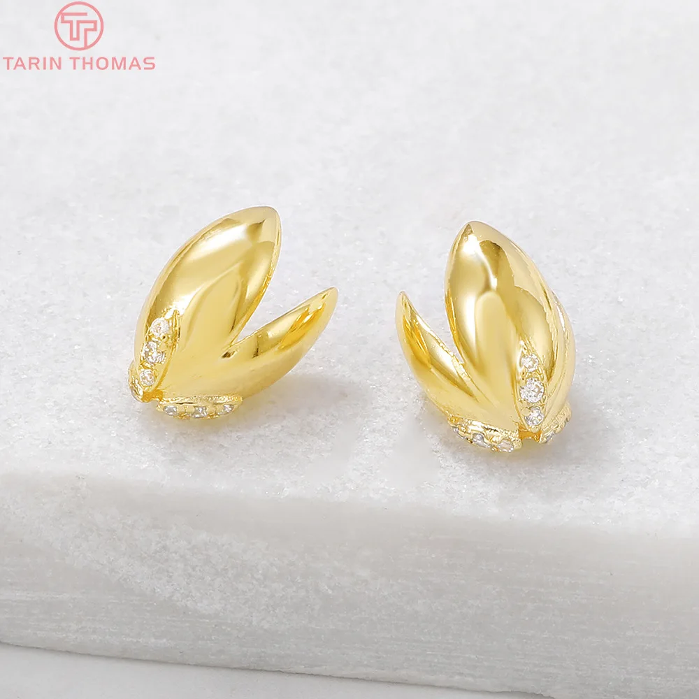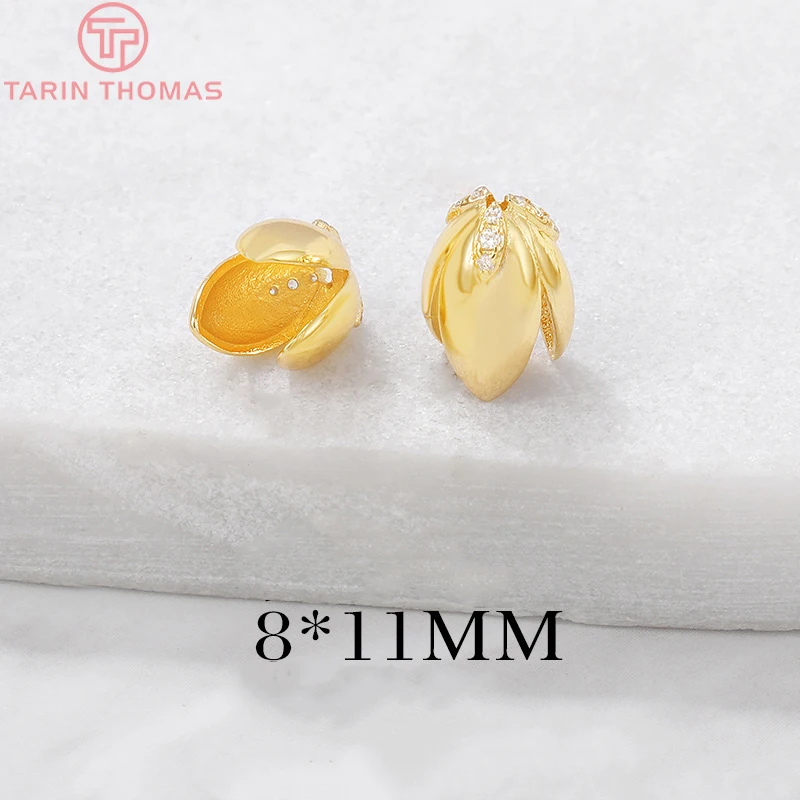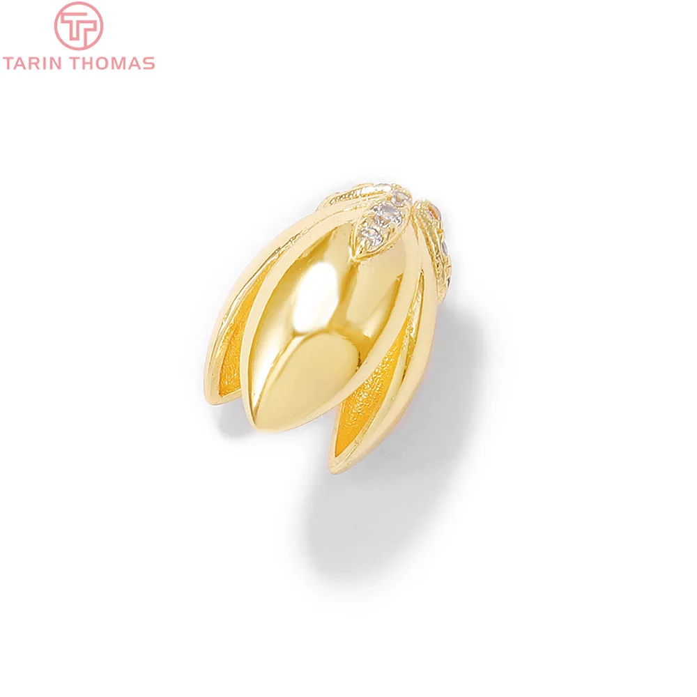 Латунные колпачки для бусин с цирконием, отверстие 1 мм, 24 К, 4 шт., 8 х11 мм, фурнитура для изготовления ювелирных изделий сделай сам