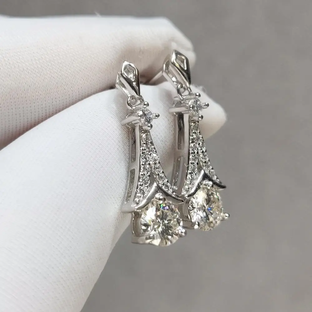 Серьги-подвески в виде круглых бриллиантовых камней, цвет Муассанит...