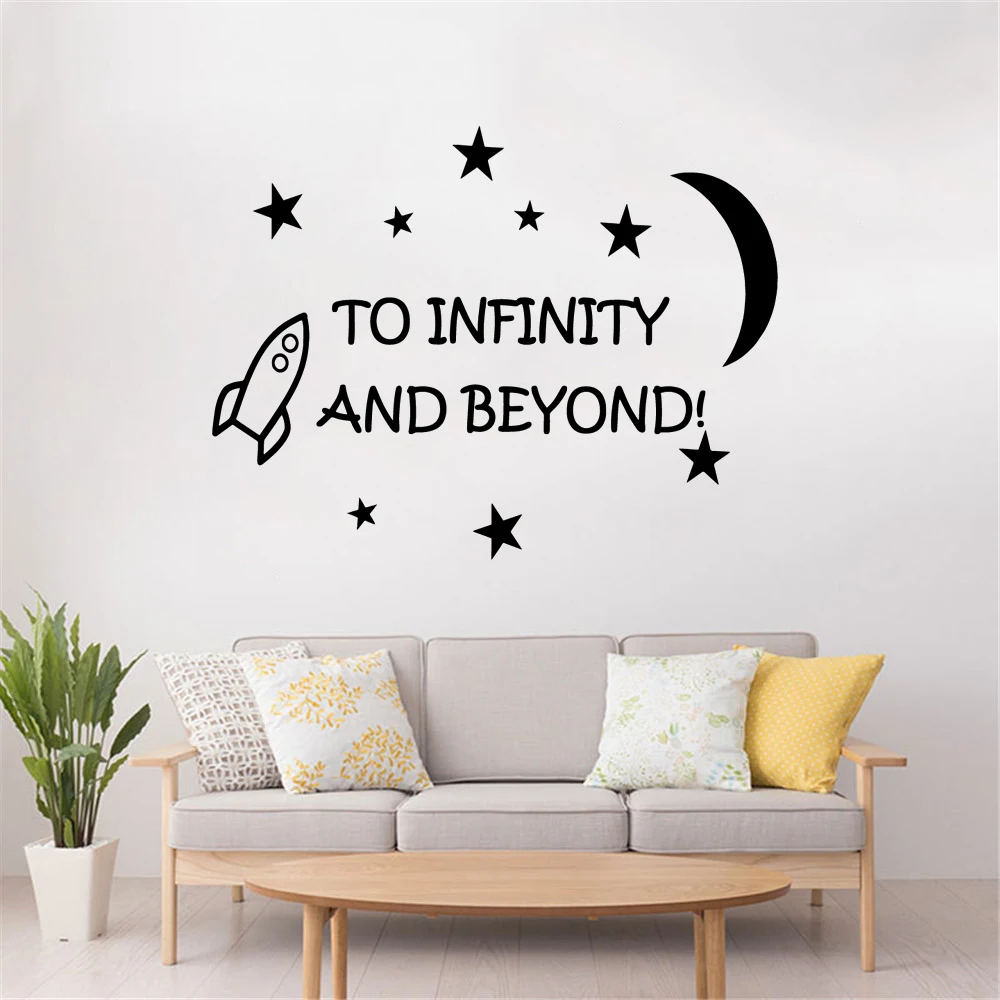 К бесконечности и за гранью, Виниловая наклейка на стену, маленькая ракета и наклейки с Луной наклейки для детской комнаты, украшение для комнаты мальчиков наклейка