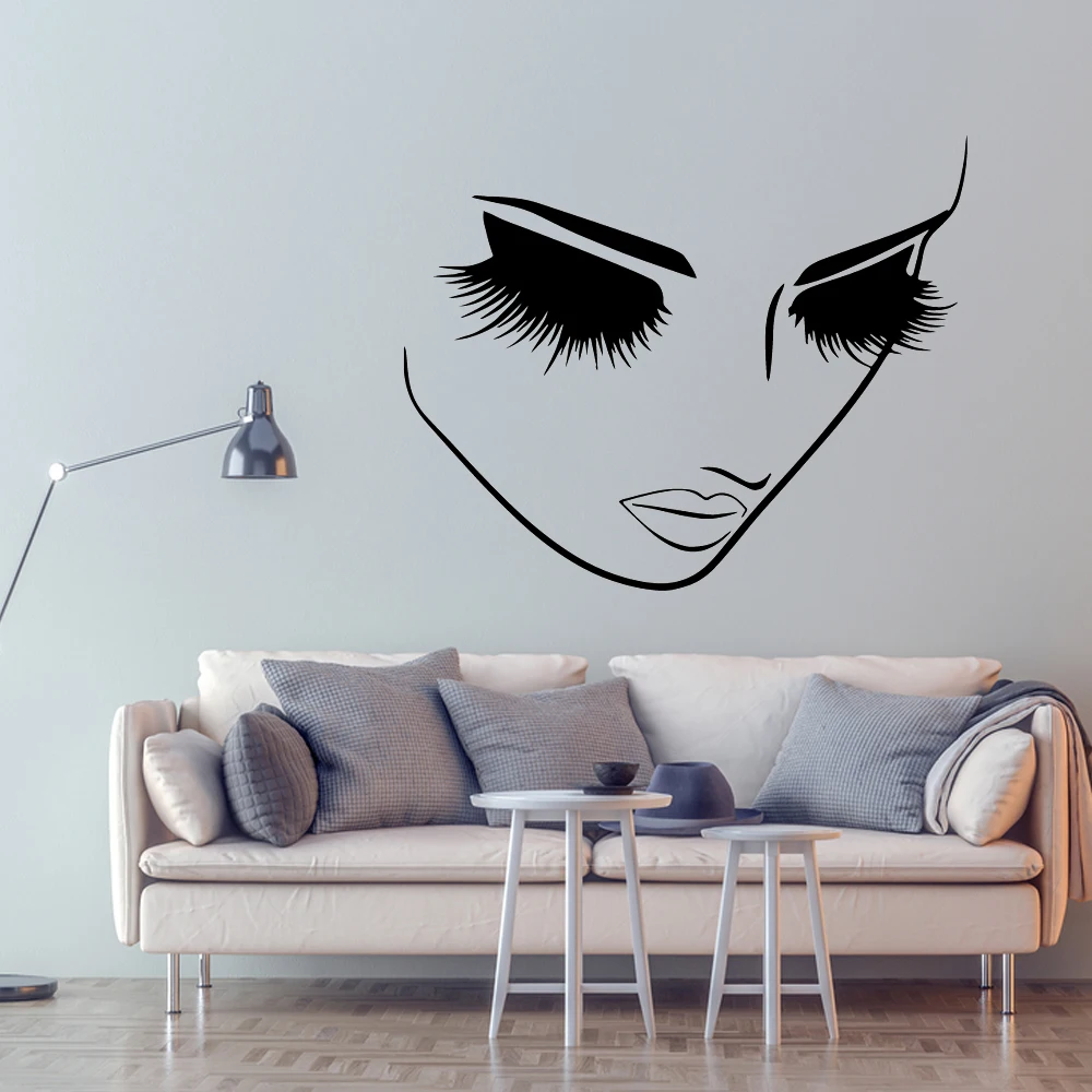 Женское лицо виниловые наклейки на стену красота студия дверь накле...