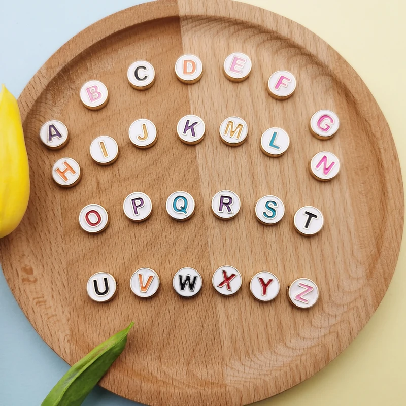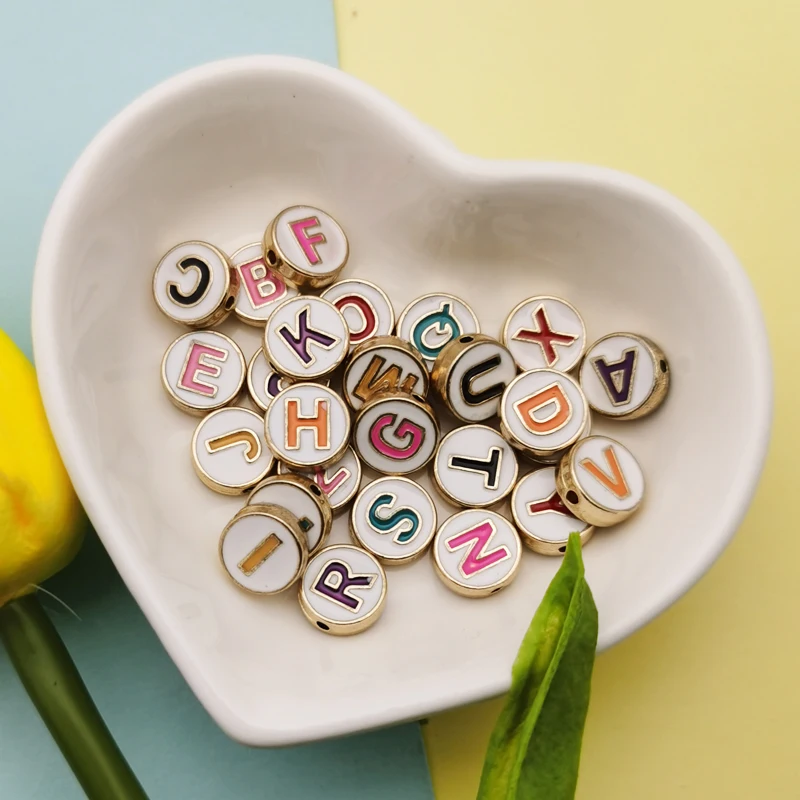 MuhNa, 10 штук в наборе 26 шт. Алфавит двойной уход за кожей лица капли масла письмо эмаль подвески бусины золотого Цвет и металлической подвеской; Подходящие для изготовления ювелирных изделий Аксессуар