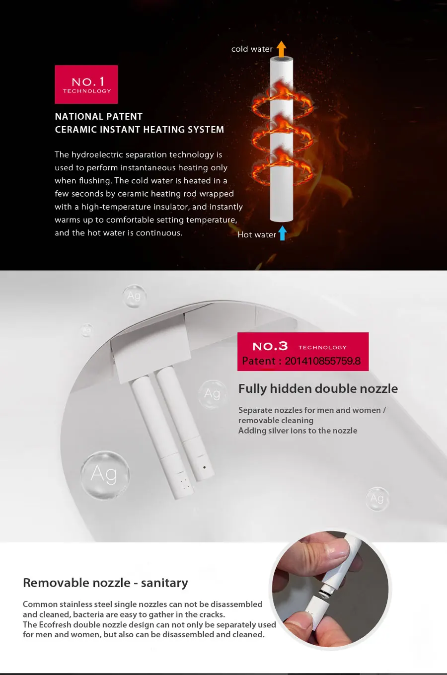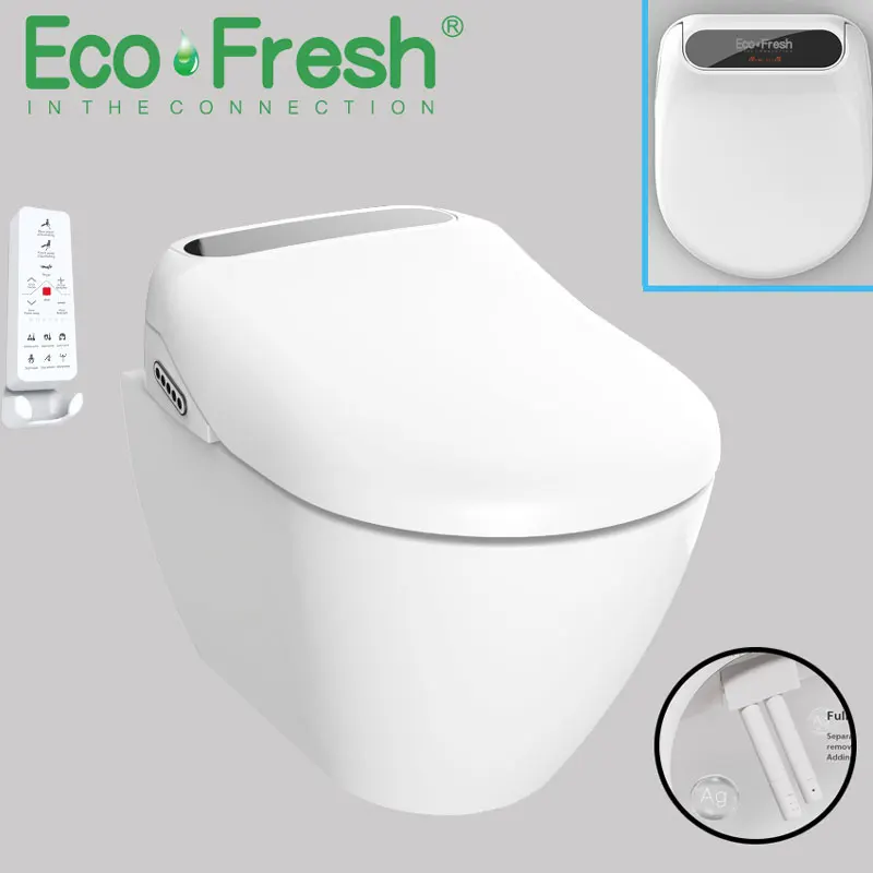 Умное сиденье для унитаза Ecofresh, электронное биде, чистая сухая нагревательная крышка, умный светодиодный светильник золотого цвета