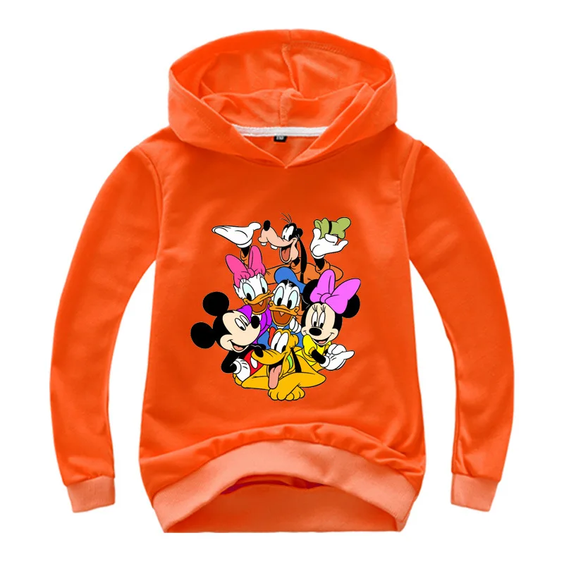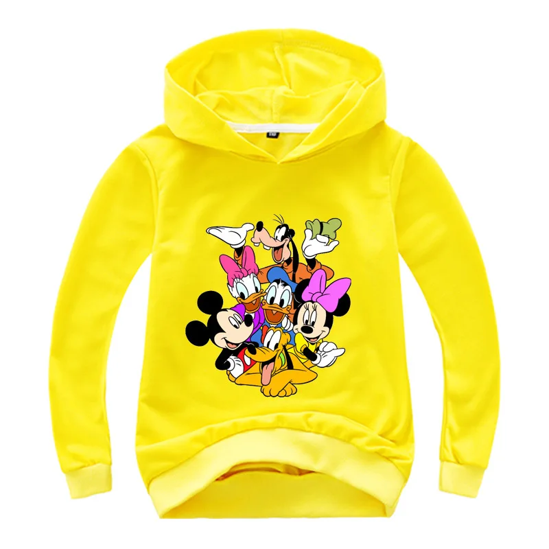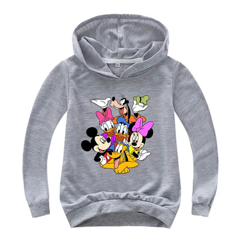 Лидер продаж, 2020 г., новые модные весенне-осенние детские футболки с длинными рукавами свитер для маленьких мальчиков и девочек детские толстовки с капюшоном и принтом Микки, Минни Маус, Дональда Дака Топ, маскарадный костюм красный, черный, серый, розовый, синий, желтый, одежда для От 2 до 15 лет старый костюм Vestidos с номером отслеживания