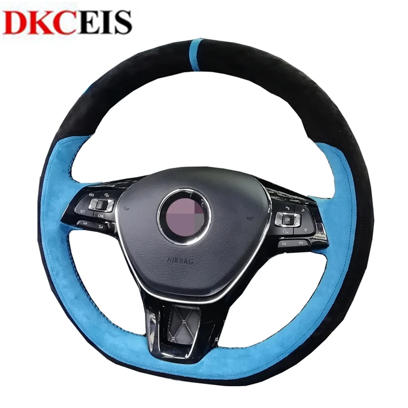 DKCEIS Черная мягкая замша ручной работы чехол рулевого колеса авто...
