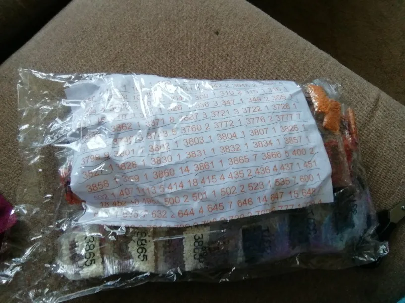 Все цвета были в наличии, но пакеты сильно пахли, как дым. Они должны быть упакованы курильщиком, который не ценится. После проверки, чтобы не было пропущенных цветов, мои руки пахли дымом. Некоторые пакеты имеют номера отрезаны, так что они не могут быть легко идентифицированы-пришлось использовать таблицу DMC, чтобы определить их.
