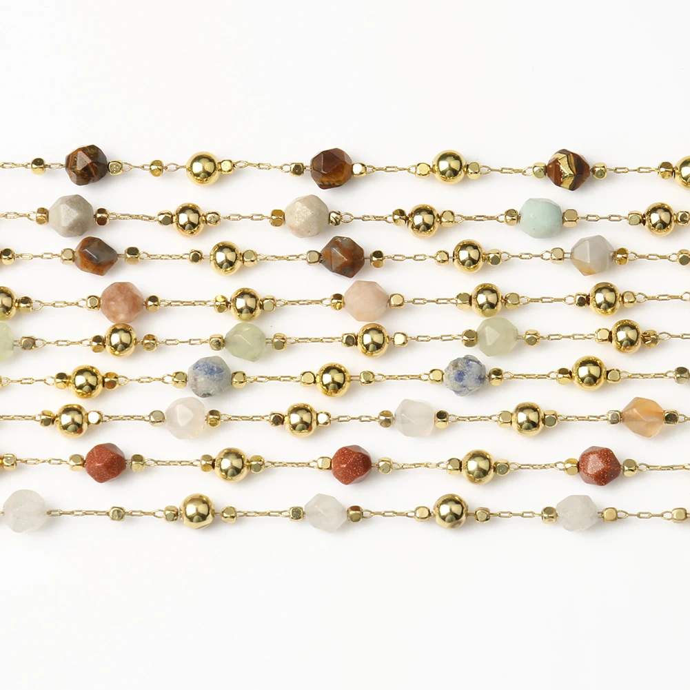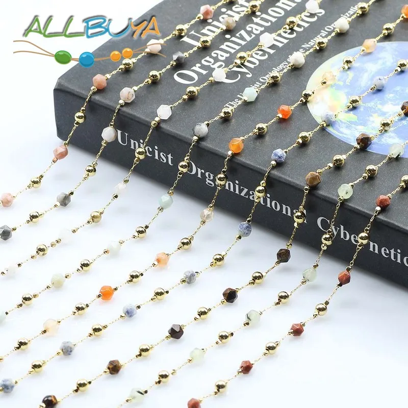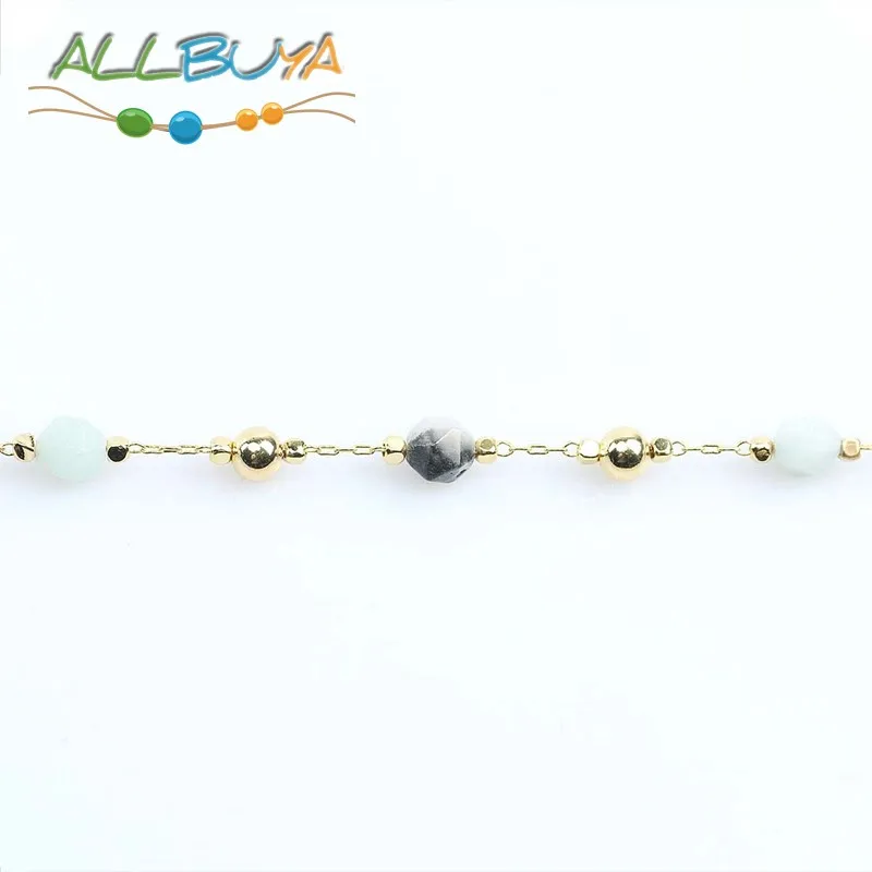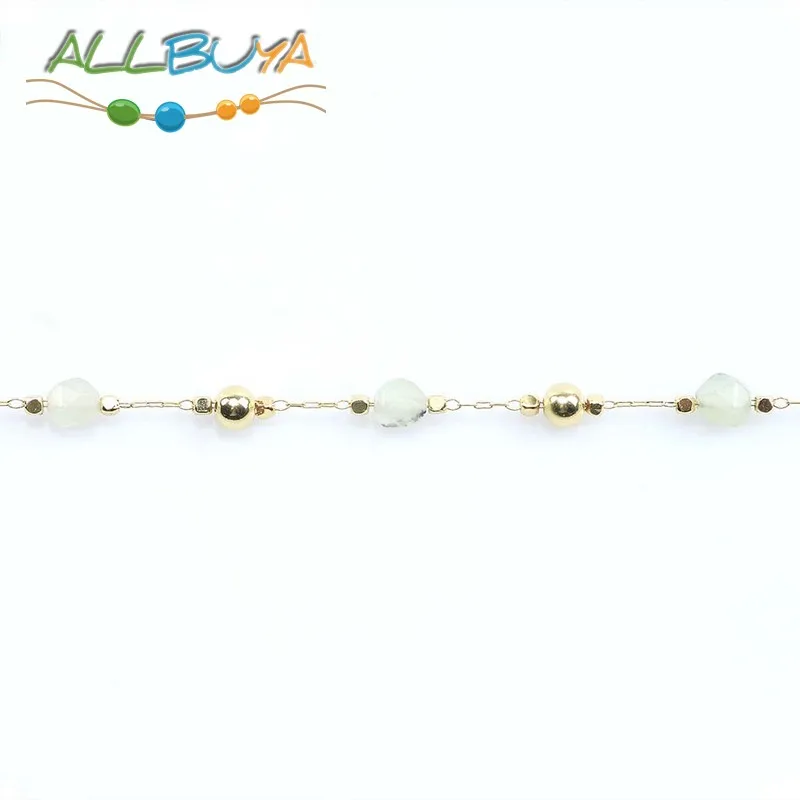 Цепочка с бусинами для ожерелий, браслетов, ножных браслетов, золотистого цвета