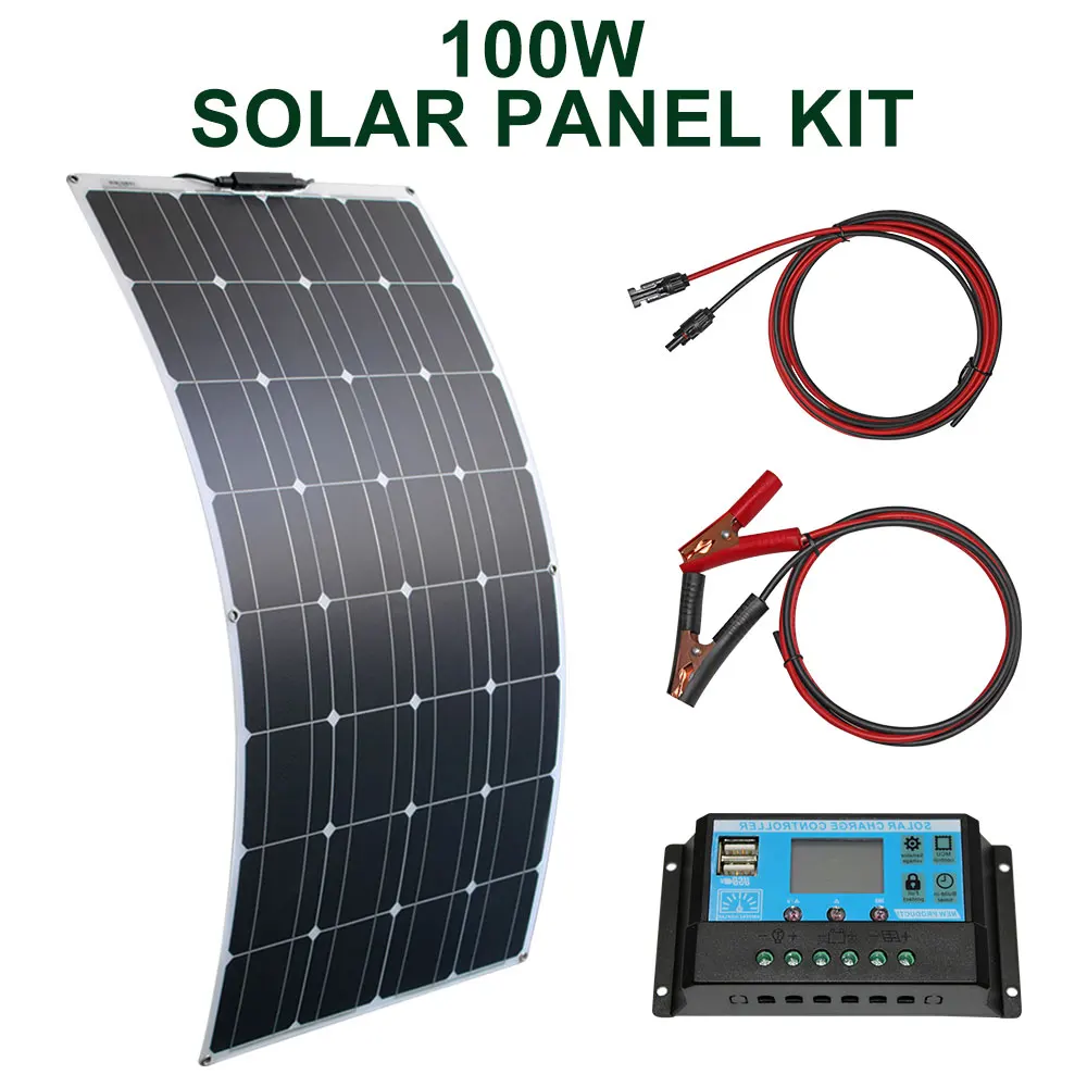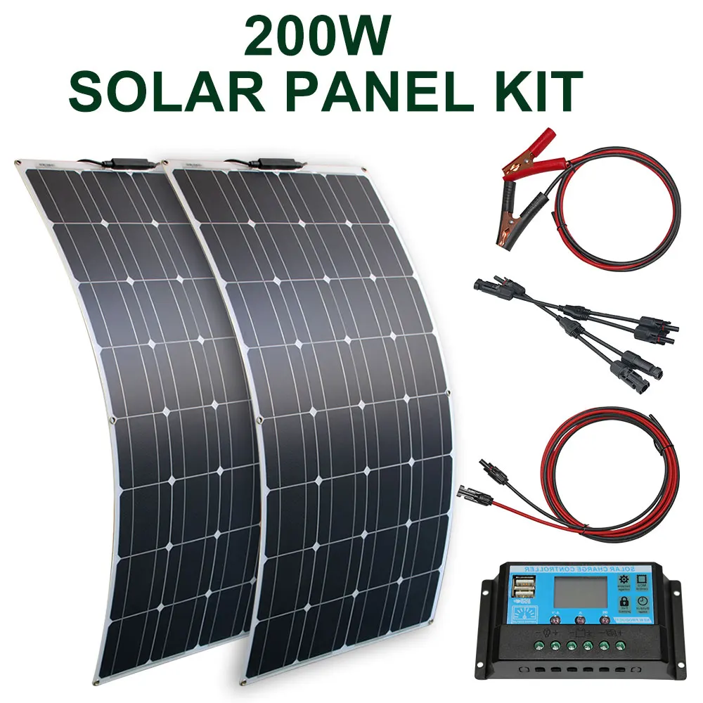 Панель солнечной батареи 100w Solarny 12v 200W 300W Pet зарядное устройство система Комплект для наружного/автодома/пешего туризма 100W RV панели солнечных батарей