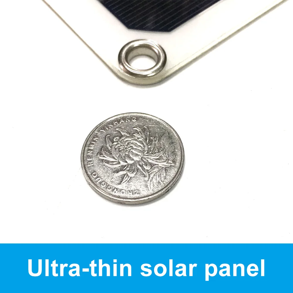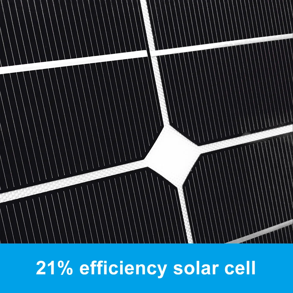 Почти не заметная, легкая панель 100 Вт, уложенная на плоской подошве, составляет всего десятую от сантиметра! Примерно на 95% тоньше, чем его жесткий аналог, эта панель идеально подходит для stealthy солнечной установки.