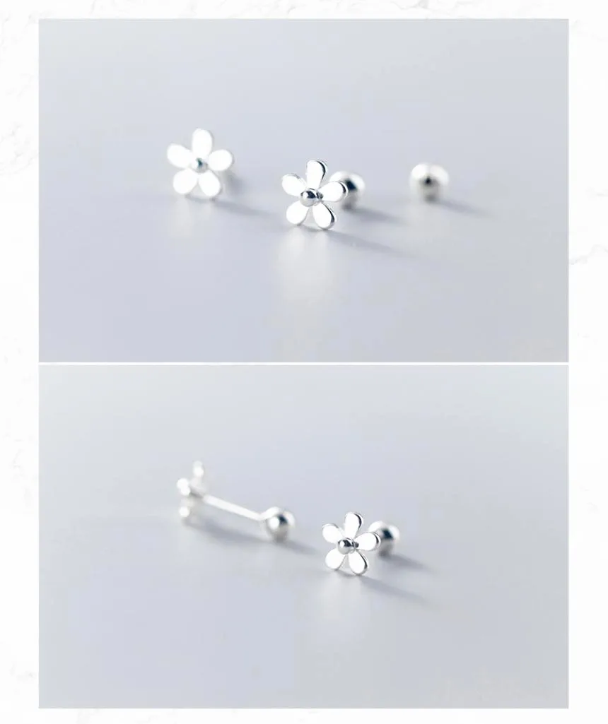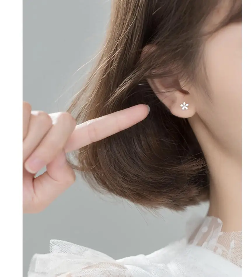 Серьги-гвоздики из стерлингового серебра 925 пробы с маленьким цветком, модные классические серьги-гвоздики для маленьких девочек