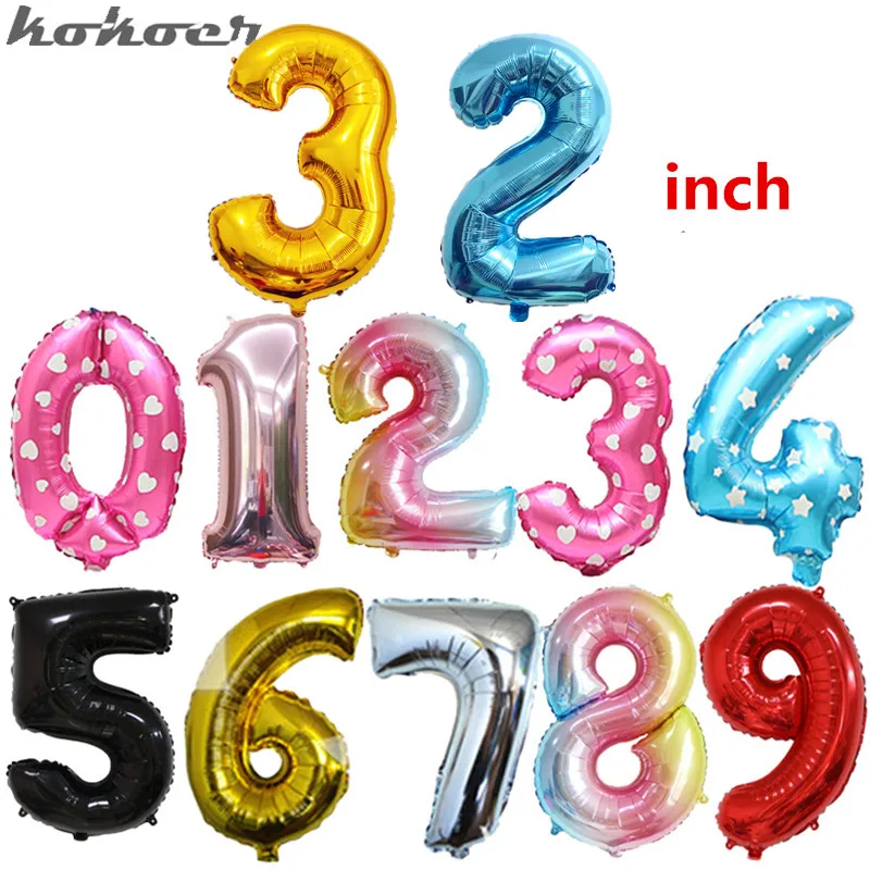 Оптовая продажа 10 цветовых стилей 32 дюйма, цвета: золотой, черный, красный, номер 0-9 воздушный шарик из фольги в форме С Днем Рождения вечерние украшения Дети Декор Воздушный баллон