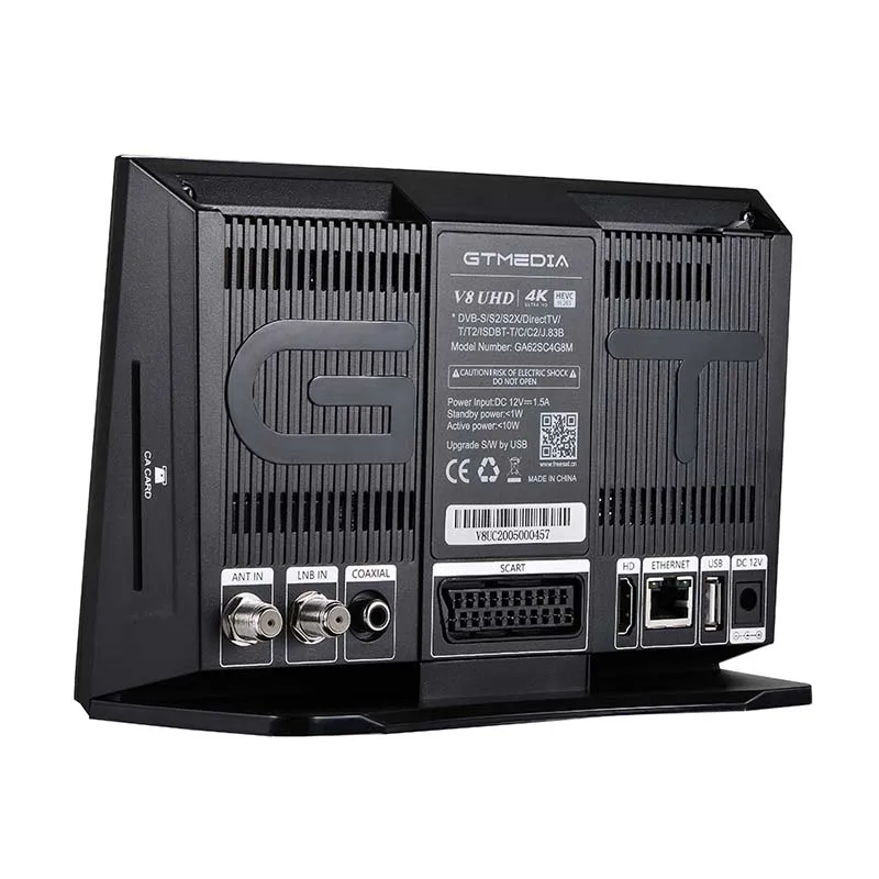 Панель Дисплей 8-разрядный Белый светодиодный дисплей с Множественная функция показателейСветодиодный индикатор питания: зеленый; Режим ожидания: красныйКнопка НЕТWi-Fi Встроенный 2,4G Wifi Поддержка IEEE 802.1.1b/g/nИК-выход ИК для 38 кГц, инфракрасный пульт дистанционного управленияЗадняя панель ANT IN ( EC-type IEC169-2 Female)LNB IN (частотный диапазон от 950мгц до 2150 МГц)Выход HD (HDMI2.0, выход до 4kx2kp5 0/60)Вырубка1 * коаксиальный (RCA: Черный)1 * хост USB2.01 * RJ45 (для 10M/100M MAC)1 * CA карта soltDC IN (DC12V/1.5A)