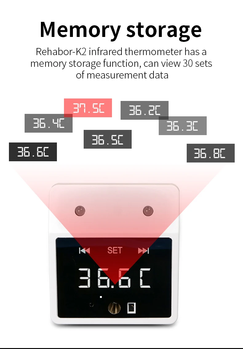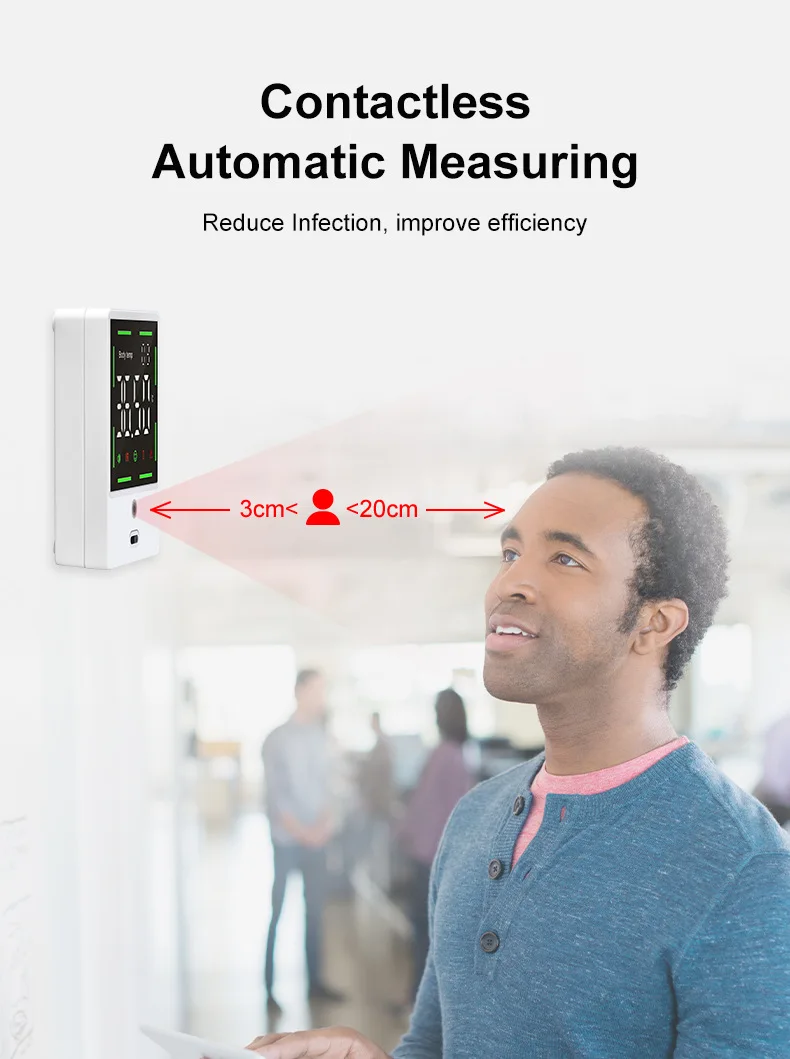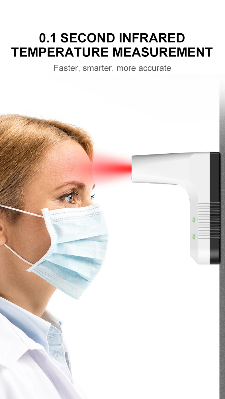 Описание: настенный Бесконтактный инфракрасный термометр может измерять температуру в пределах 2-4 дюймов от лба, что делает его более безопасным и безопасным. Когда температура превышает нормальное значение температуры, Бесконтактный цифровой термометр будет отображать красный светильник и издавать звук, который даст вам знать, есть ли температура, И эта температура может показывать показания по Цельсию или Фаренгейту. Диапазон инфракрасного измерения: 0 ℃ ~ 50 ℃Особенность:Бесконтактный термометр: Бесконтактный инфракрасный термометр может измерять температуру в пределах 2-4 дюймов от лба, что делает его более безопасным и безопасным.Оповещение об аномальной температуре: если температура превышает нормальное значение температуры, Бесконтактный цифровой термометр будет отображать красный светильник издавать звук, который сообщит вам, есть ли температура, В противном случае он будет показывать только зеленый светильник и температуруСчитывание °C и °F: точное измерение температуры. Этот ЛОБНЫЙ термометр может показывать показания по Цельсию или Фаренгейту. Диапазон инфракрасного измерения: 0 ℃ ~ 50 ℃2 режима измерения: Длительное нажатие на отверстие переключателя режима в течение 3 секунд для переключения в режим измерения температуры, режим поверхности, режим объекта. Подходит для семьи, офиса, гостиницы, библиотеки, предприятия и учреждения, школыПростая установка: Этот инфракрасный термометр очень легко устанавливается на стену с помощью гвоздей, крючков, двусторонней липкой ленты или скобокСпецификация:Экран: ЖК-цифровой дисплейВремя отклика: 5sТочность тестирования: ± 0,2 градусовСпособ зарядки: зарядка через USB или портативные зарядные устройстваДиапазон инфракрасного измерения: 0 ~ 50 ℃Автоматическая сигнализация: мигает красный светильник + звук «Di».Автоматическое измерение: расстояние измерения 5-10 см