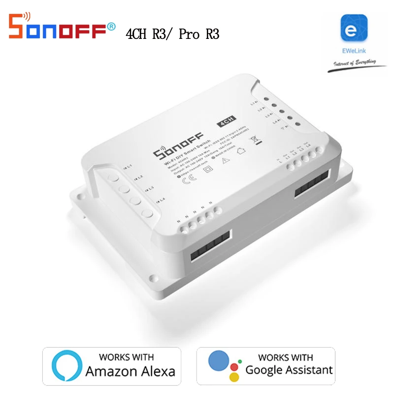 Новый 4-канальный рельсовый переключатель Sonoff 4CH R3PRO R3 10A, переключатели света с Wi-Fi, умный дом, работает с eWeLink Alexa Google Home