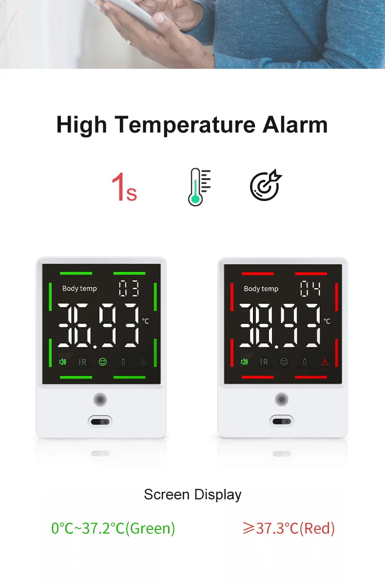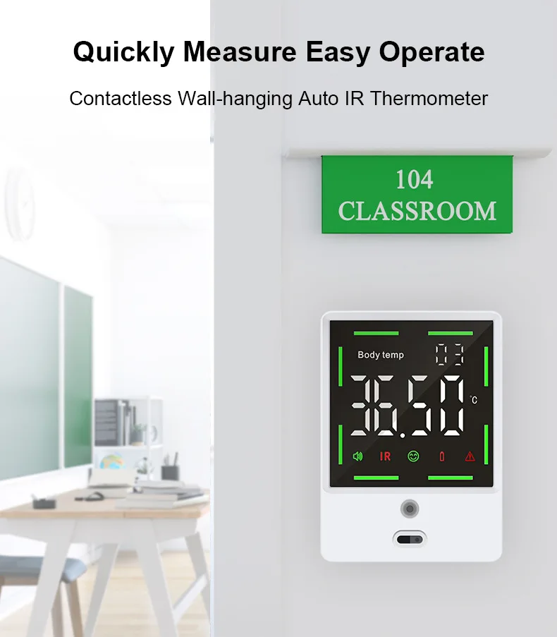 Описание: настенный Бесконтактный инфракрасный термометр может измерять температуру в пределах 2-4 дюймов от лба, что делает его более безопасным и безопасным. Когда температура превышает нормальное значение температуры, Бесконтактный цифровой термометр будет отображать красный светильник и издавать звук, который даст вам знать, есть ли температура, И эта температура может показывать показания по Цельсию или Фаренгейту. Диапазон инфракрасного измерения: 0 ℃ ~ 50 ℃Особенность:Бесконтактный термометр: Бесконтактный инфракрасный термометр может измерять температуру в пределах 2-4 дюймов от лба, что делает его более безопасным и безопасным.Оповещение об аномальной температуре: если температура превышает нормальное значение температуры, Бесконтактный цифровой термометр будет отображать красный светильник издавать звук, который сообщит вам, есть ли температура, В противном случае он будет показывать только зеленый светильник и температуруСчитывание °C и °F: точное измерение температуры. Этот ЛОБНЫЙ термометр может показывать показания по Цельсию или Фаренгейту. Диапазон инфракрасного измерения: 0 ℃ ~ 50 ℃2 режима измерения: Длительное нажатие на отверстие переключателя режима в течение 3 секунд для переключения в режим измерения температуры, режим поверхности, режим объекта. Подходит для семьи, офиса, гостиницы, библиотеки, предприятия и учреждения, школыПростая установка: Этот инфракрасный термометр очень легко устанавливается на стену с помощью гвоздей, крючков, двусторонней липкой ленты или скобокСпецификация:Экран: ЖК-цифровой дисплейВремя отклика: 5sТочность тестирования: ± 0,2 градусовСпособ зарядки: зарядка через USB или портативные зарядные устройстваДиапазон инфракрасного измерения: 0 ~ 50 ℃Автоматическая сигнализация: мигает красный светильник + звук «Di».Автоматическое измерение: расстояние измерения 5-10 см