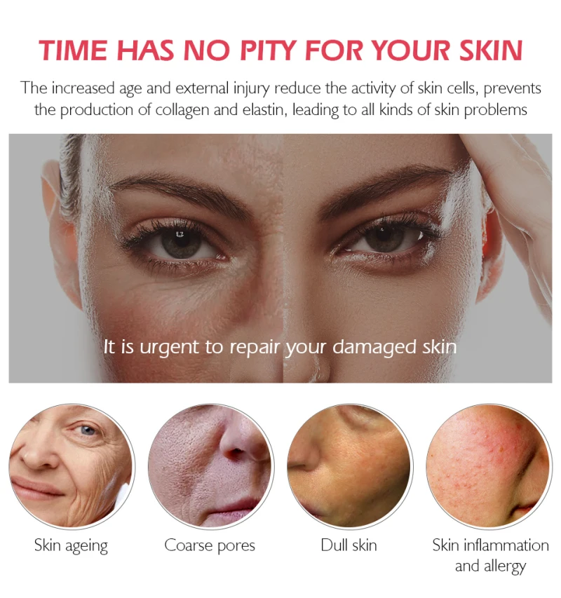 Эффективность продукта: это мощная организация по ремонту. Он может производить коллаген. Генерировать гиалуронат натрия и активировать рост клеток он восстанавливает поврежденную кожу отбеливает и осветляет кожу увлажняет и окисляет кожу и задерживает старение. Он может ослабить пятна с двойными эффектами и предотвратить поколение гемосидерина и меланина