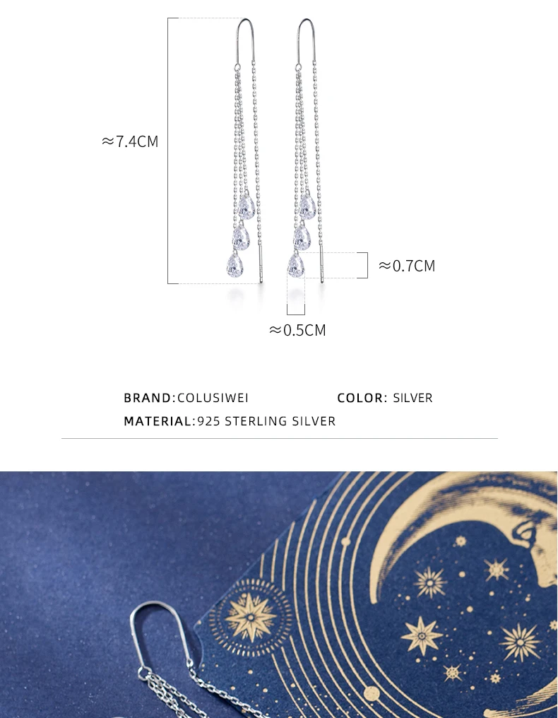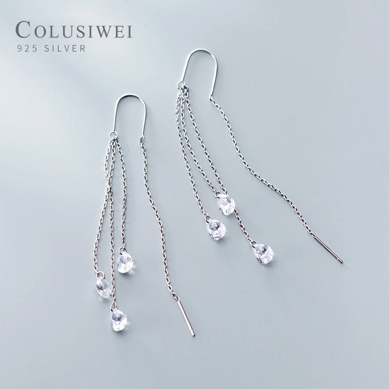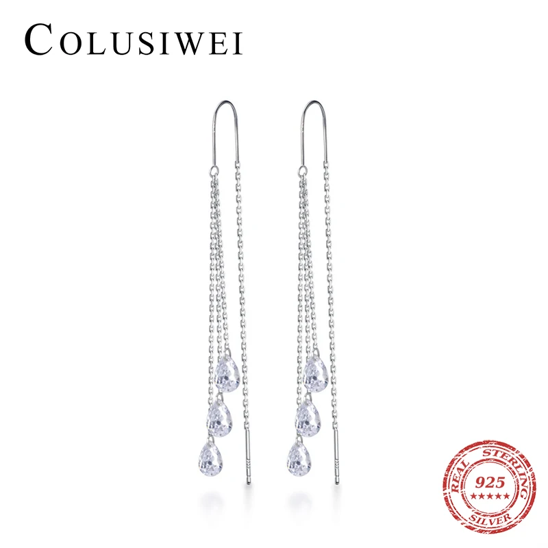 Модные длинные висячие серьги Colusiwei из стерлингового серебра 925 пробы с кисточкой в форме капли воды для женщин серьги с геометрической линией ювелирные изделия