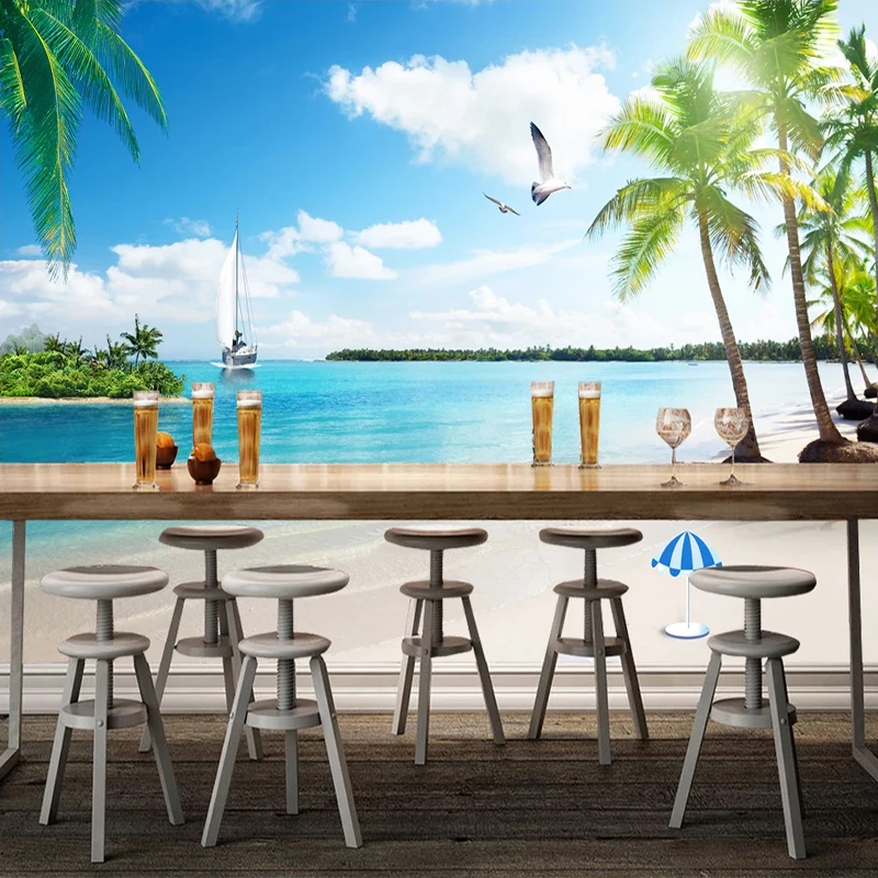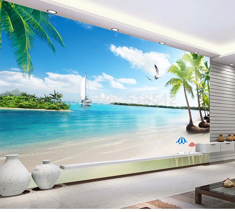 Пользовательские 3D обои настенная живопись голубое небо белые облака пляж кокосовое дерево Пейзаж гостиная фон фото настенная живопись