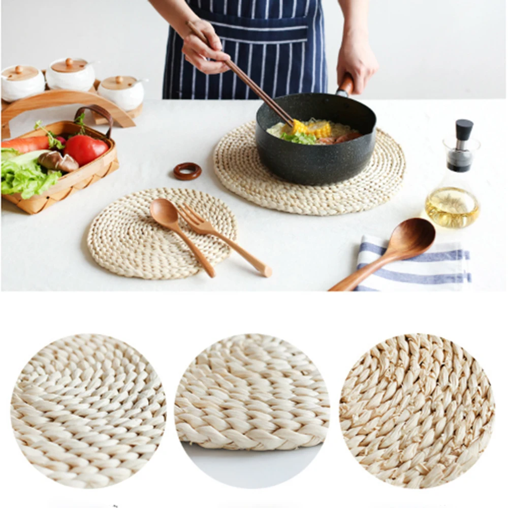 Натуральные плетеные столовые приборы из кукурузы, Круглый ротанговый обеденный стол, коврики с теплоизоляцией, подставка для горшка