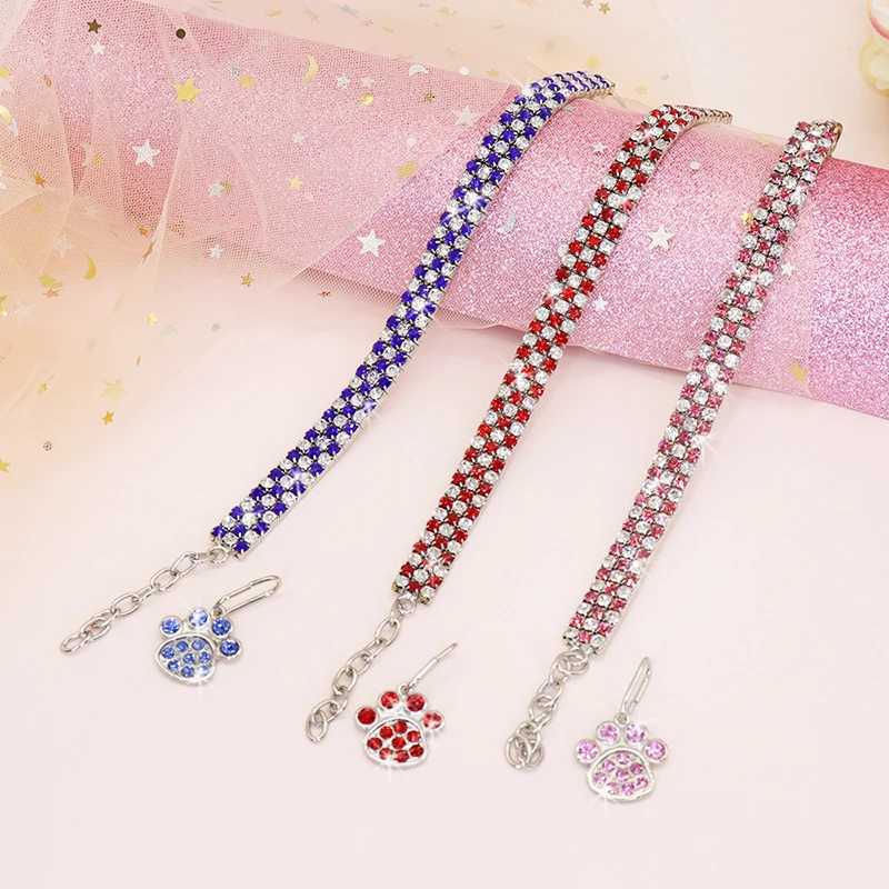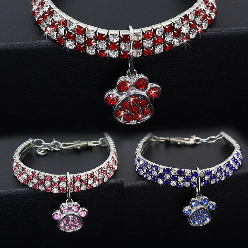 Блестящие стразы ошейник для животных Блестящие кристаллы бриллианты эластичное ожерелье с лапа Подвеска для кошек собак ошейник товары для животных