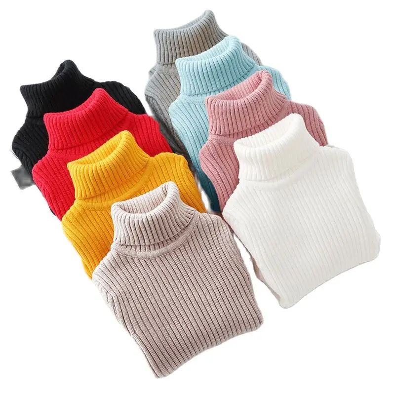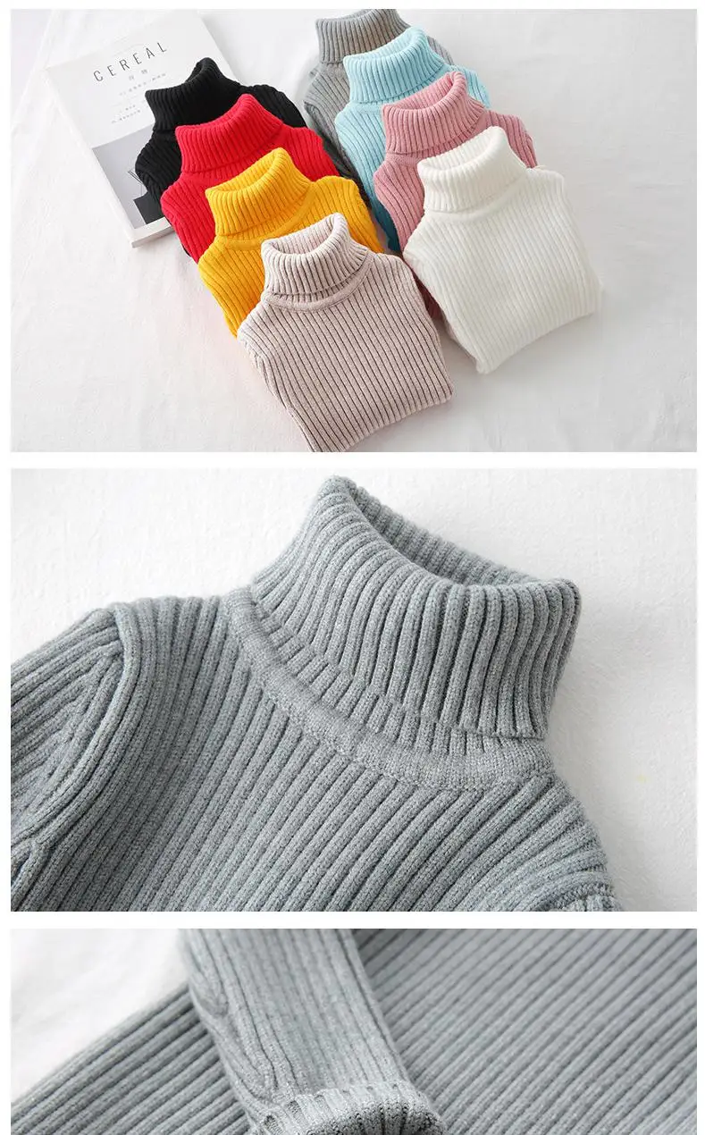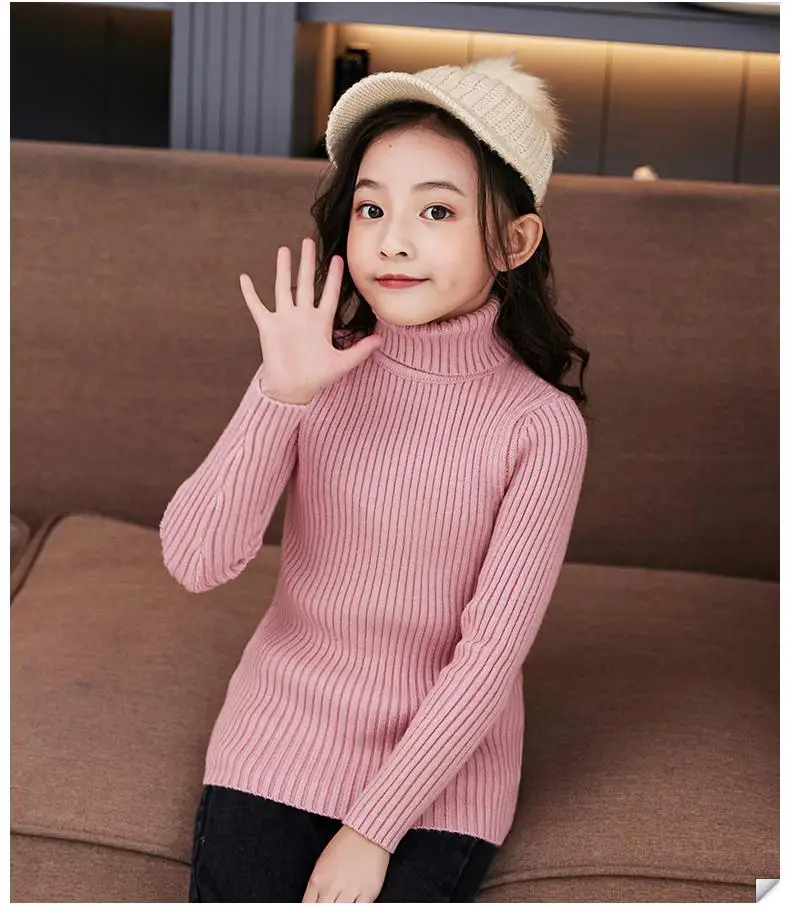 Свитер с воротником под горло для девочек; Одежда в рубчик; Однотонная Одежда для маленьких девочек; Пуловер для девочек; Свитера; Трикотажные изделия для мальчиков; Топы
