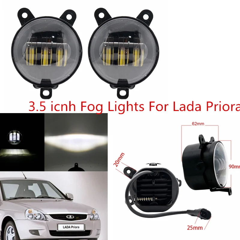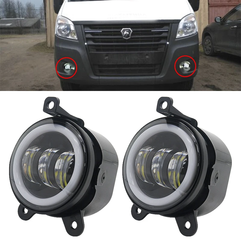 Пара 3,5 дюймов круглые светодиодные противотуманные фасветильник с белым янтарным ореолом лада приора для Газель Россия, машины противотуманные фары