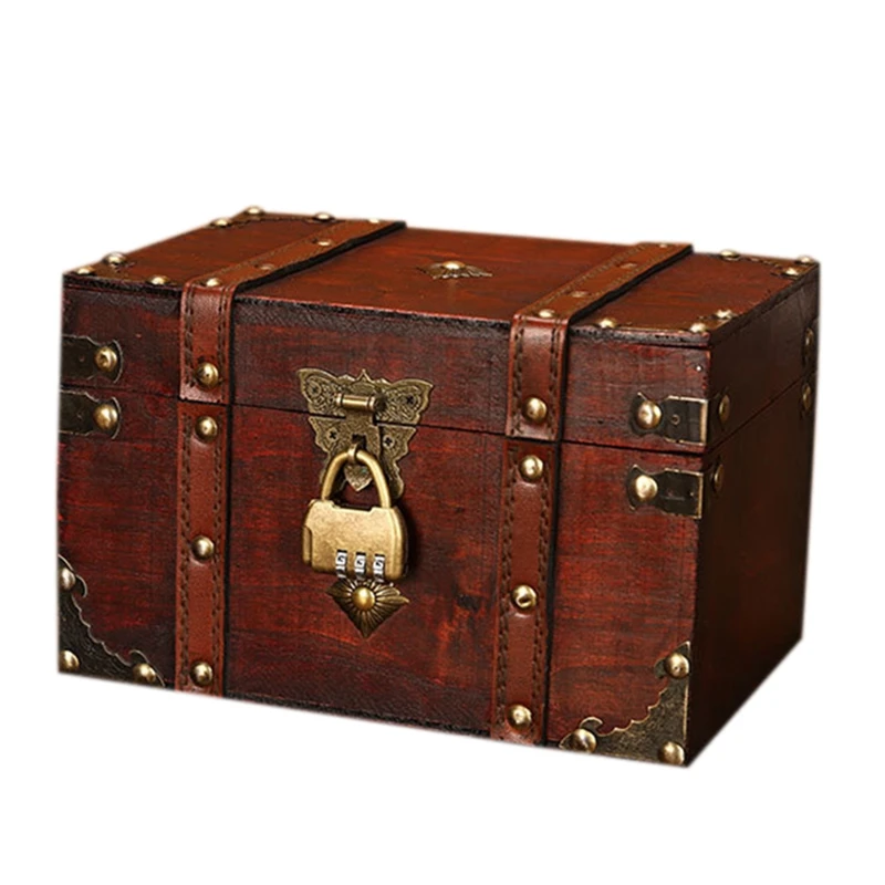 Винтажный деревянный ящик для хранения в стиле ретро с замком, органайзер для драгоценностей в античном стиле для шкафа, шкатулка для украшений, шкатулка для безделушек-L