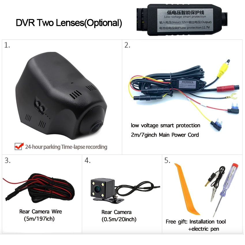 Доступное напряжение: напряжение источника питания, используемое приборной камерой, составляет 12 в согласно стандарту транспортного средства. Материал источника питания уровня спецификации транспортного средства может быть непосредственно подключен к оригинальному источнику питания транспортного средства. Соблюдайте Оригинальное соглашение о транспортном средстве.