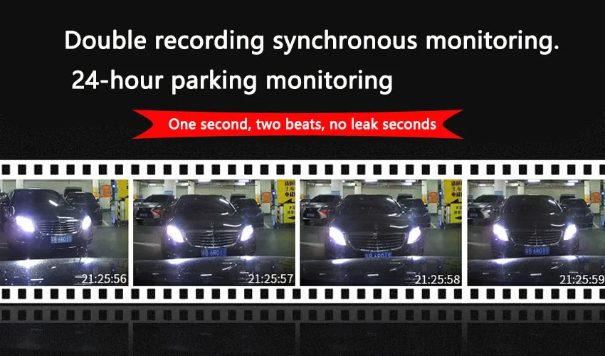 Наблюдение за парковкой: регистратор имеет функцию мониторинга парковки и входит в режим ожидания после парковки и загорания. Через датчик гравитации транспортное средство отслеживается в любое время и вибрируется. Видеофайла около 30 секунд будет быстро открывается и записанные в 0,5 секунд, и видеофайл в то время будут заблокированы. Выключите автоматически после записи, чтобы убедиться, что питание больше не используется.