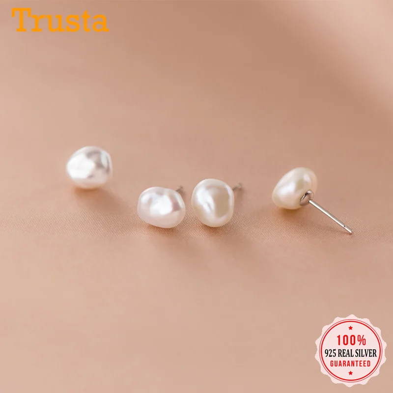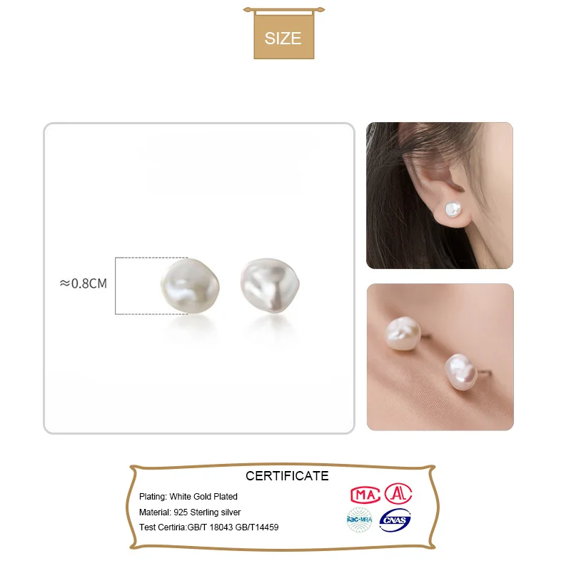 Серьги-гвоздики женские из серебра 925 пробы с барочным жемчугом
