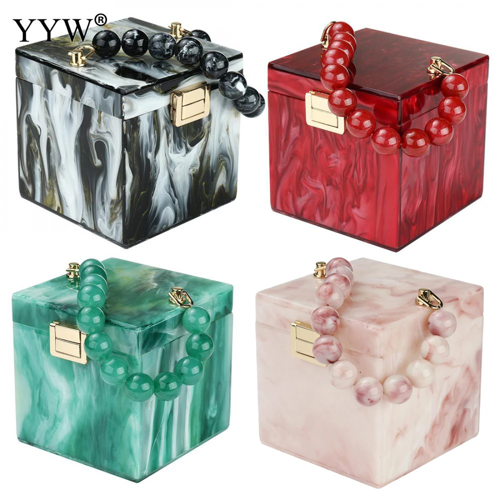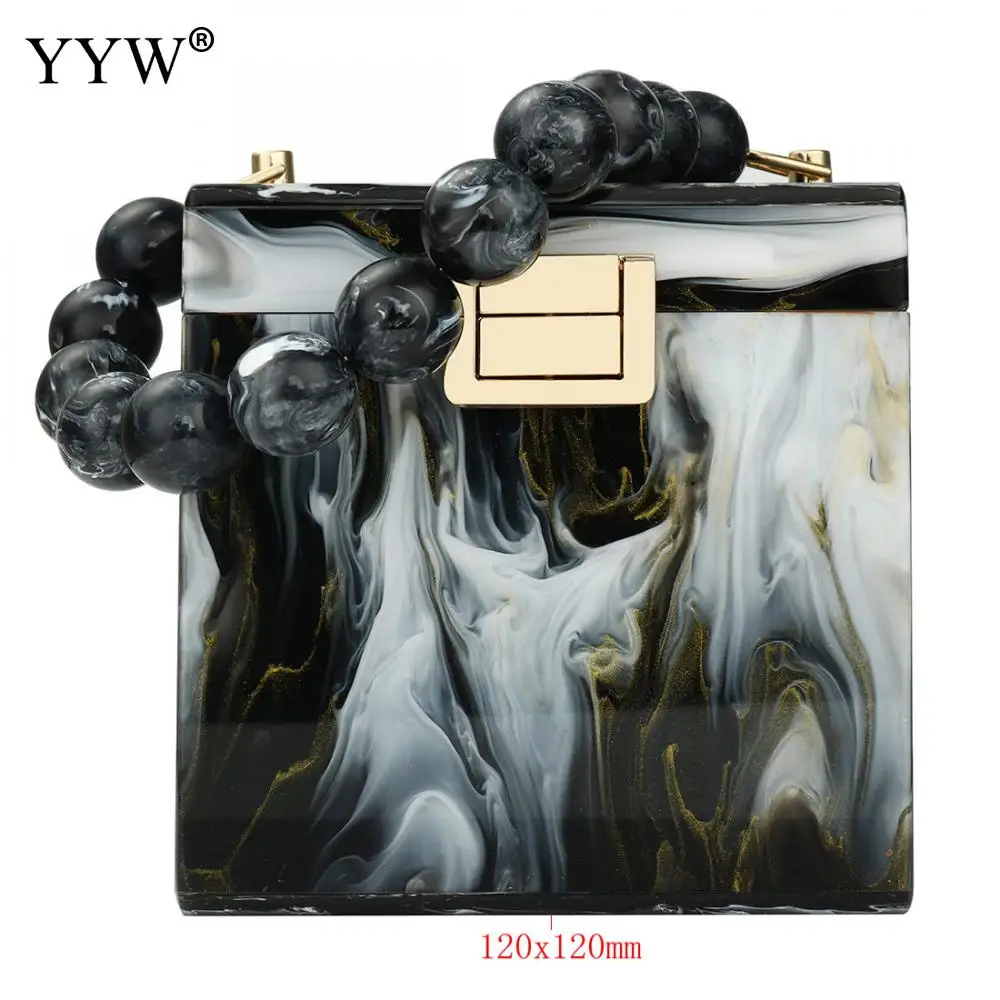 Женская акриловая модная маленькая коробка с мраморной текстурой, женские роскошные вечерние сумки, кошельки и сумки, винтажные женские сумки-тоут с бусинами