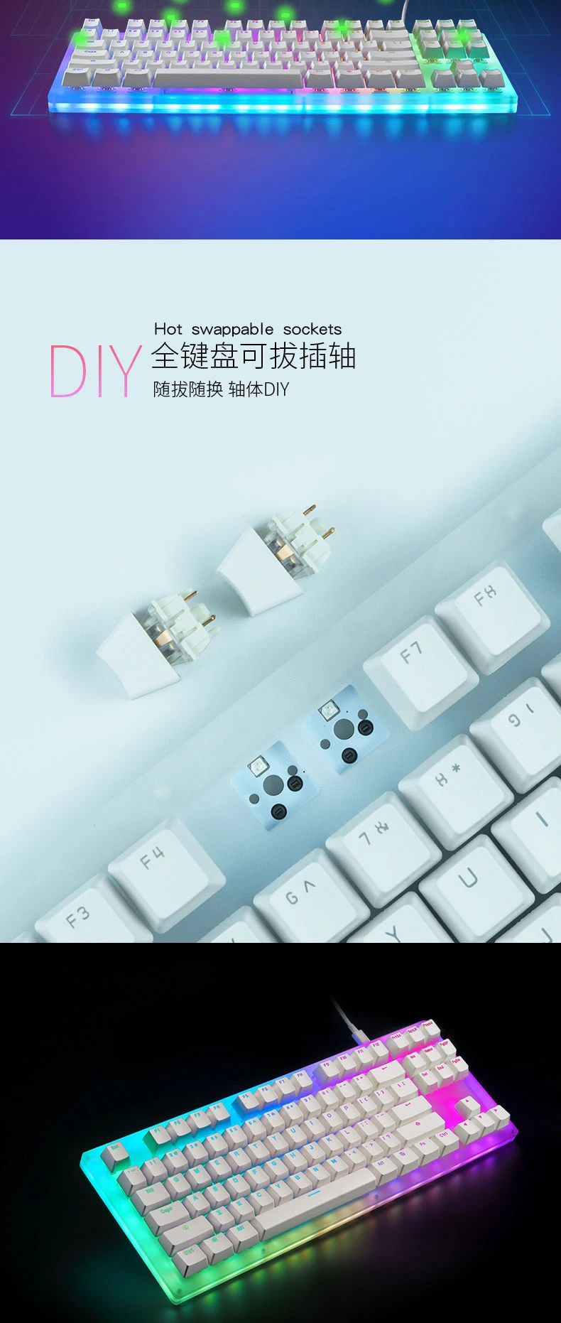 Клавиатура Womier K87 механическая, 80%, 87 TKL, чехол с печатной платой, с возможностью горячей замены, с поддержкой световых эффектов, со светодиодным переключателем RGB