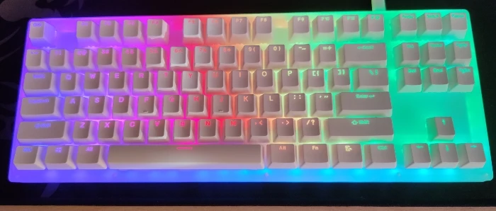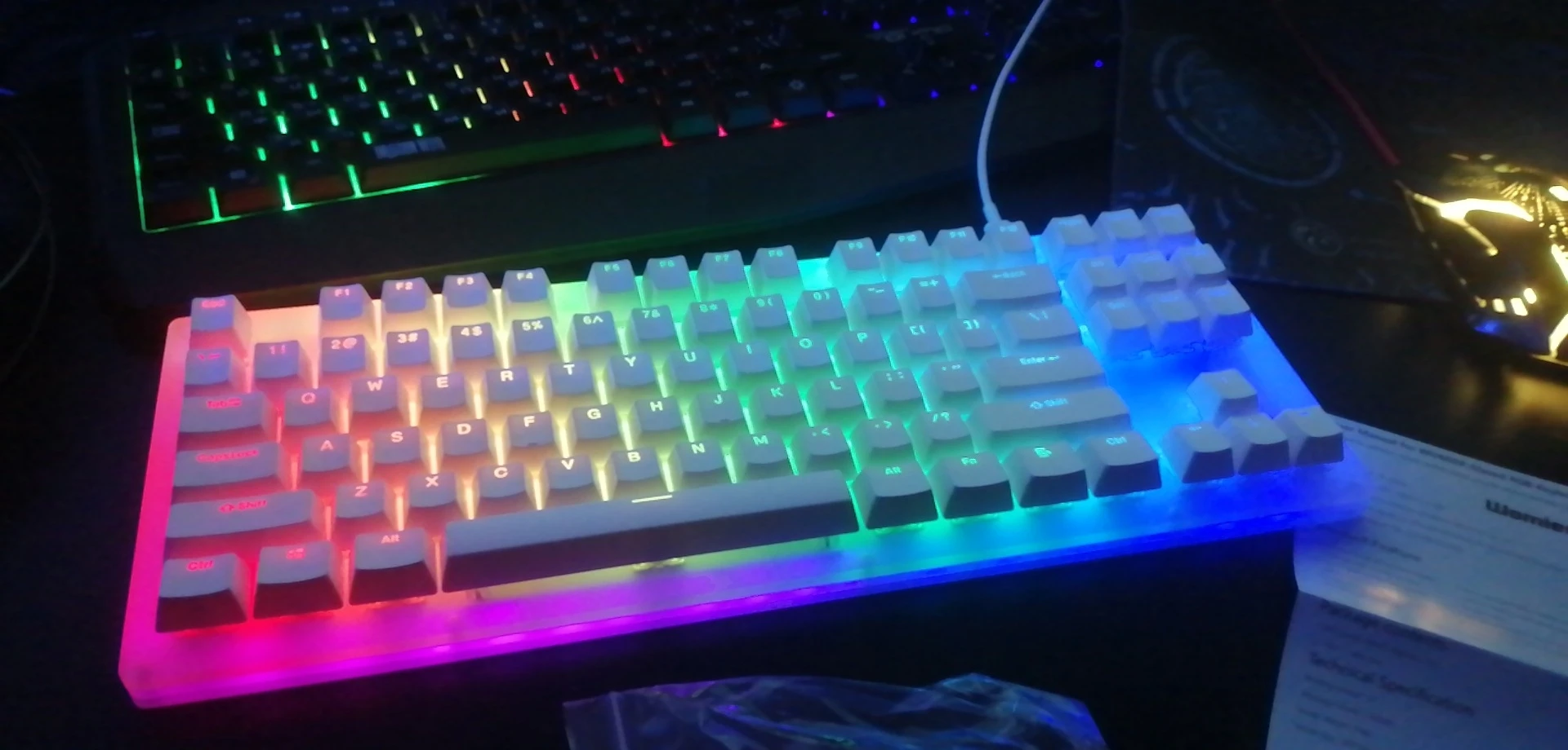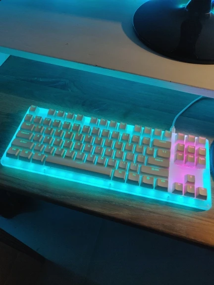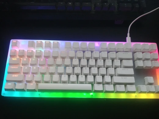 Продукт очень красивый. Конструкция кажется прочной. Хорошее качество. Колпачки для ключей хороши. Стабилизатор нуждается в усовершенствовании, его немного шатко. RGB свет яркий и яркий Рекомендовано.