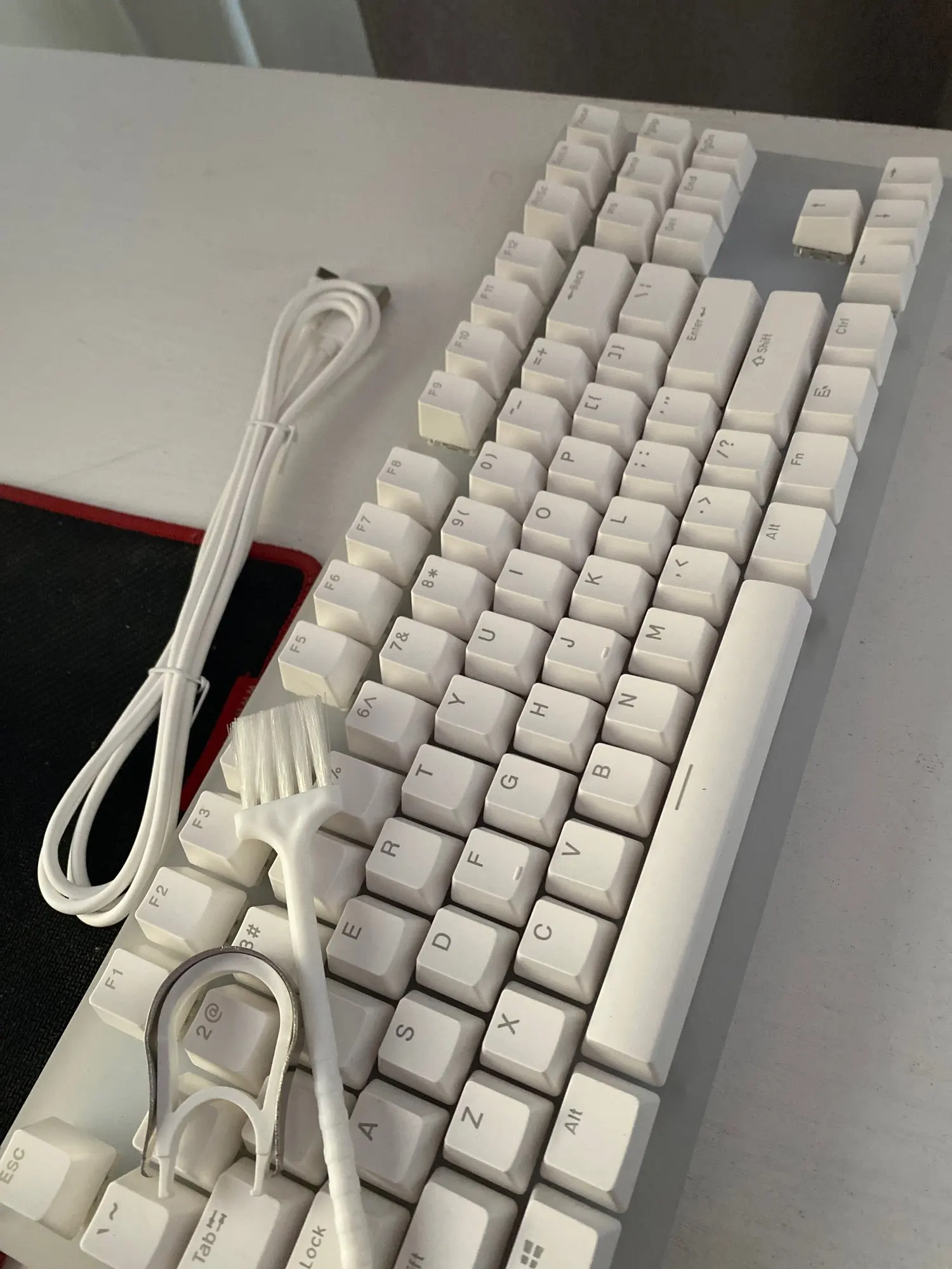 Клавиатура приехала в целости и сохранности, в комплекте положили пуллерми щеточку. Слегка западал пробел, но переткнув кейпап он встал в пазы как надо. Также очень странная клавиша "w", она слегка выше чем все остальные клавиши. Хотя для меня это не является проблемой, тк все рано буду менять капы. Это моя первая механическая клавиатура, так что оценивать мне сложно, но кажется она пришла даже смазанная, хотя и далеко не самым должным образом. В целом очень хорошо, я рад!)