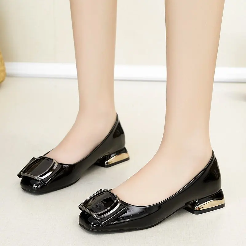 Сезон весна-осень; Женские водонепроницаемые мокасины; Модельные туфли из лакированной кожи; Туфли с квадратным носком без застежки; Женские туфли-лодочки на низком каблуке; 8226N