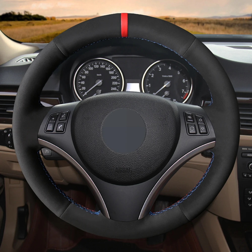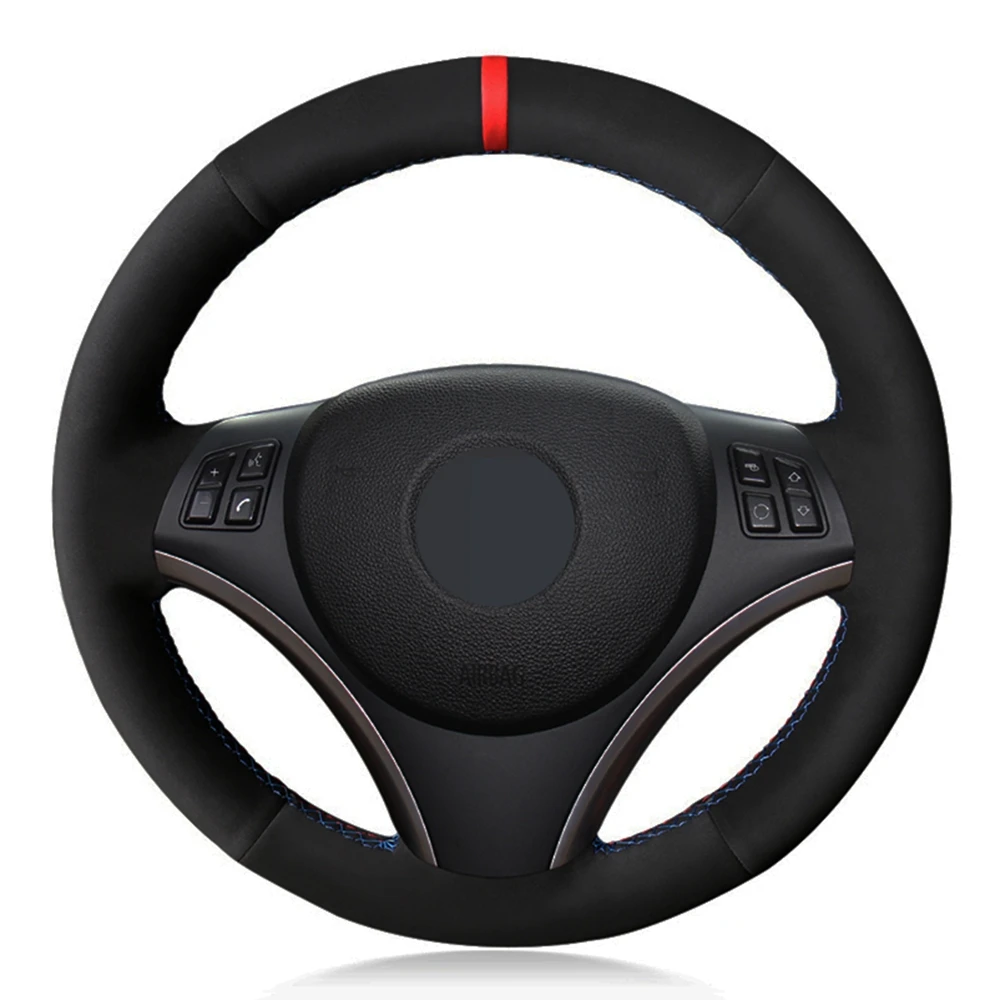 Замша из натуральной кожи черного цвета, сшитая вручную, для BMW E90, E91, E92, E93, X1, E84, E87, E81, E82, E88, чехол рулевого колеса автомобиля