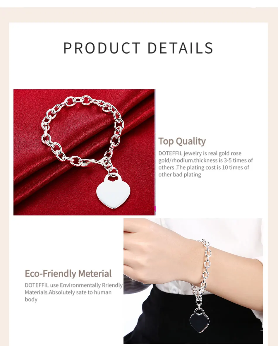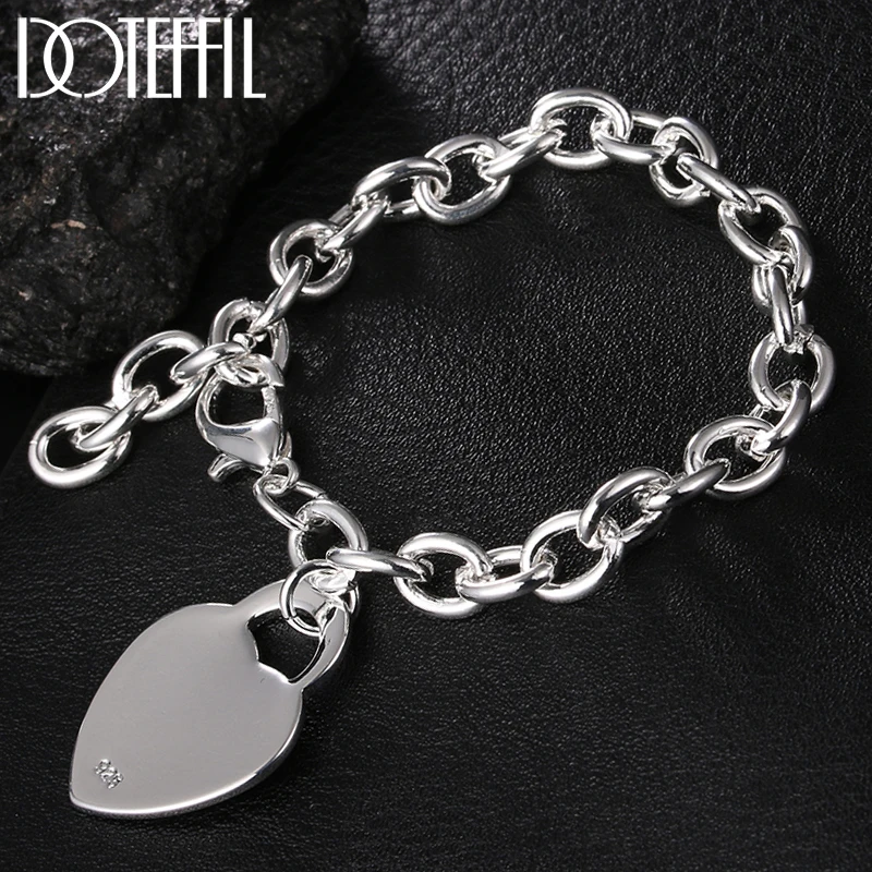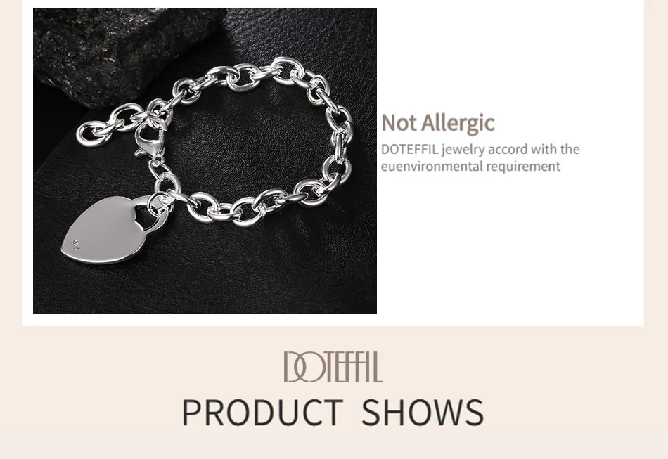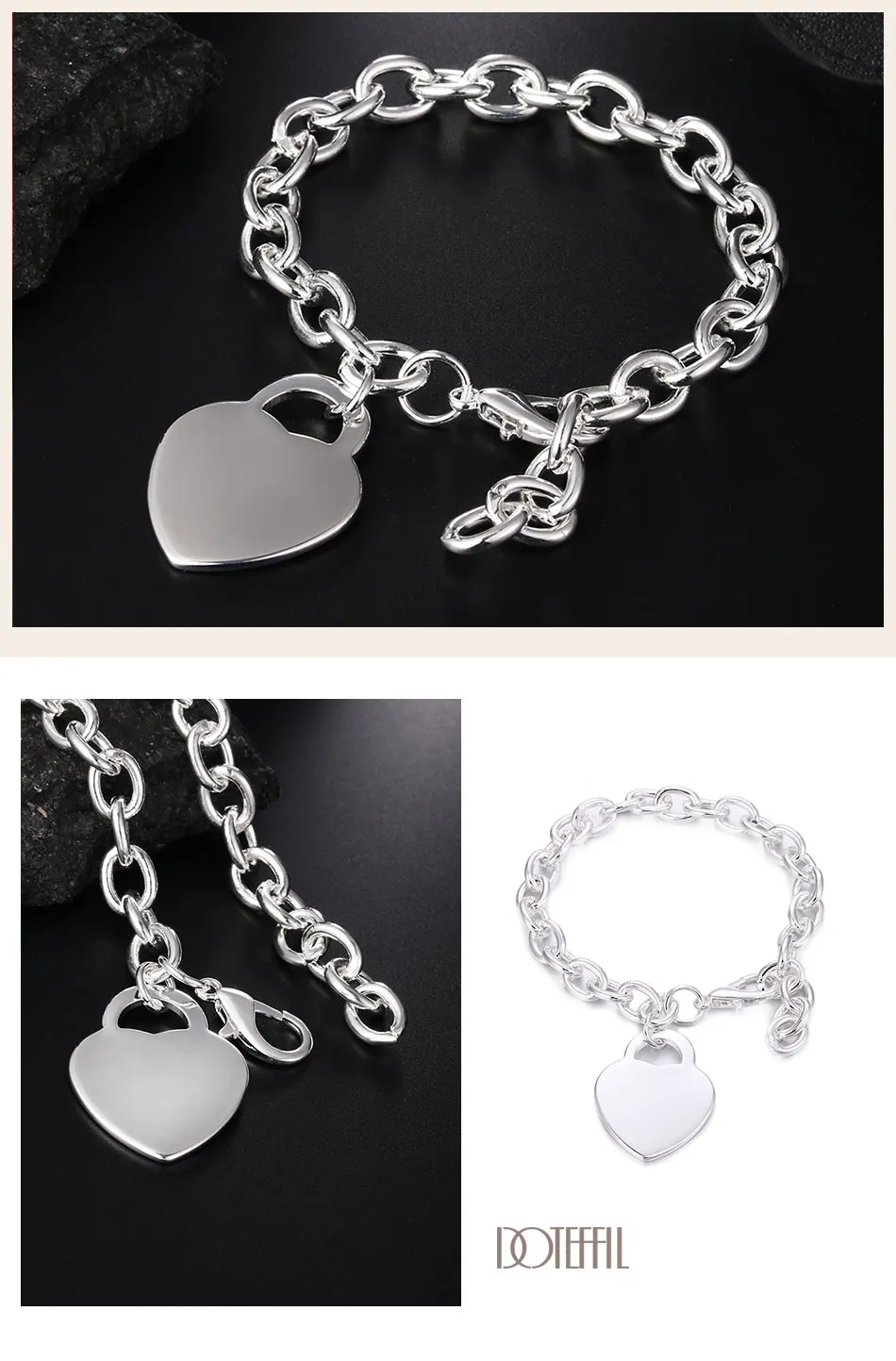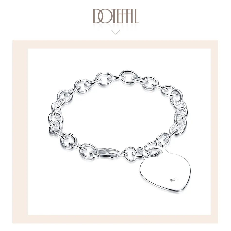 Браслет-цепочка DOTEFFIL из серебра 925 пробы, с любовным сердцем, для женщин и мужчин, для свадьбы, помолвки, модные ювелирные украшения