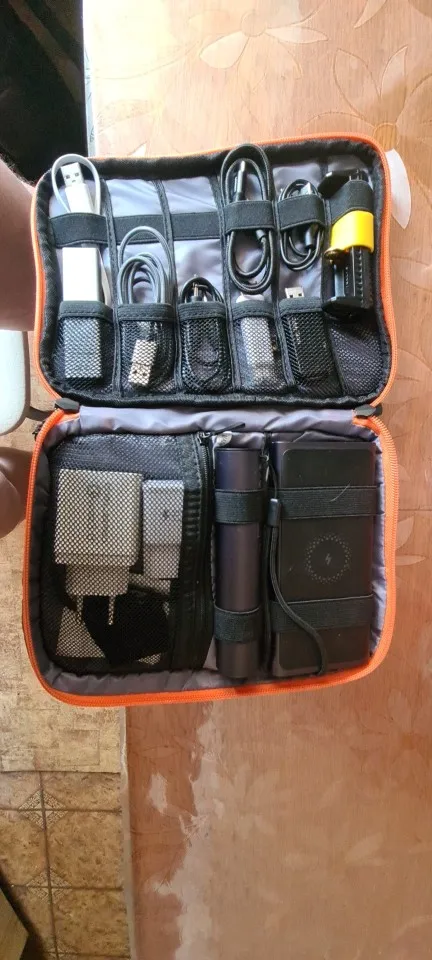 Сумка Выглядит хорошо сделанной. Не было обнаружено каких-либо ошибок в шитье или распущенных концах. Он имеет хороший размер, но внутренние отсеки очень прямые, поэтому более длинные кабели трудно поместиться (но есть и более широкие Отсеки). В целом, это хорошая сумка для организации кабелей. В наличии много отсеков, и мы уверены, что это сделает путешествие намного более организованным, сохраняя мой планшет, телефон и кабели камеры в порядке. 18 dias para Brasil, sem taxas ou impolos.