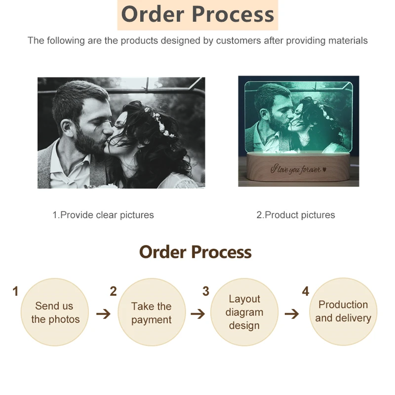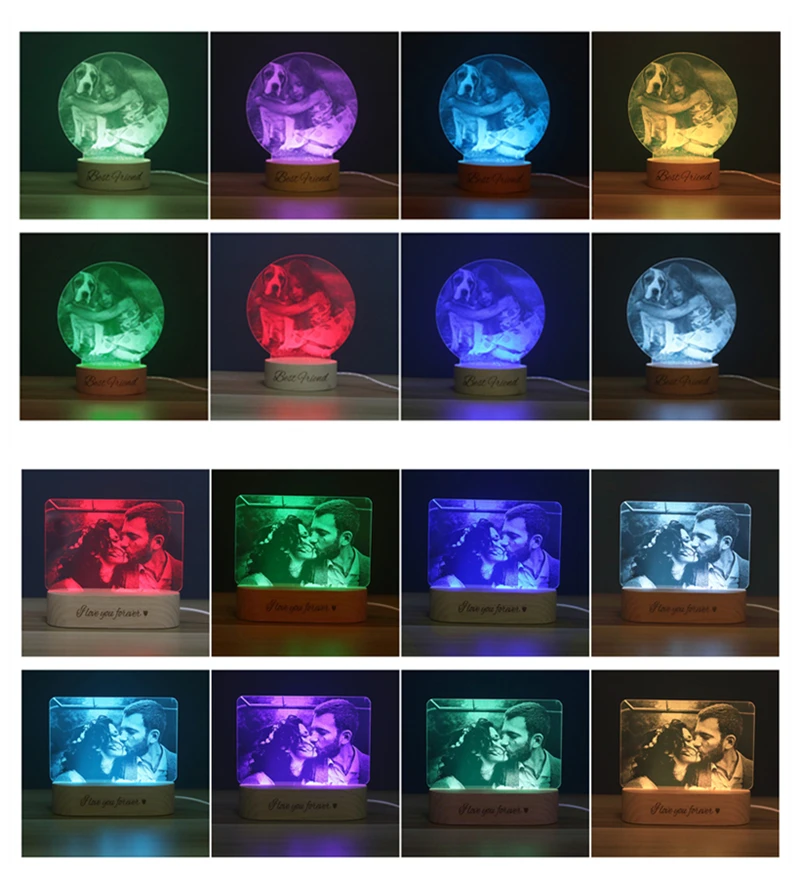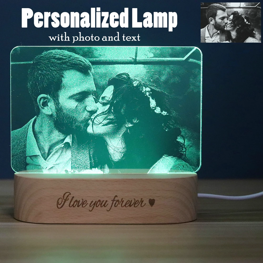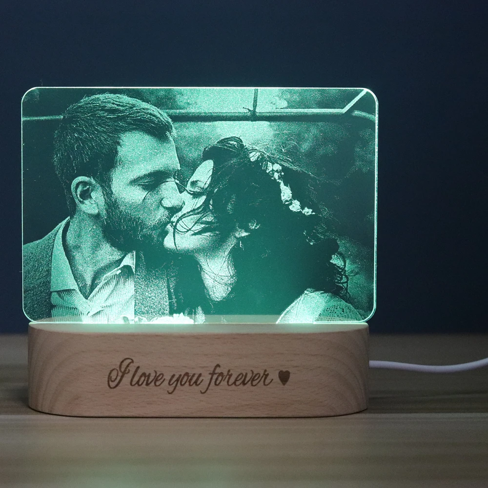 Прямая поставка, фото и искусство, 3D светильник, настольная лампа, деревянная основа, персонализированный подарок, питание от USB, лампа для спальни, домашний декор