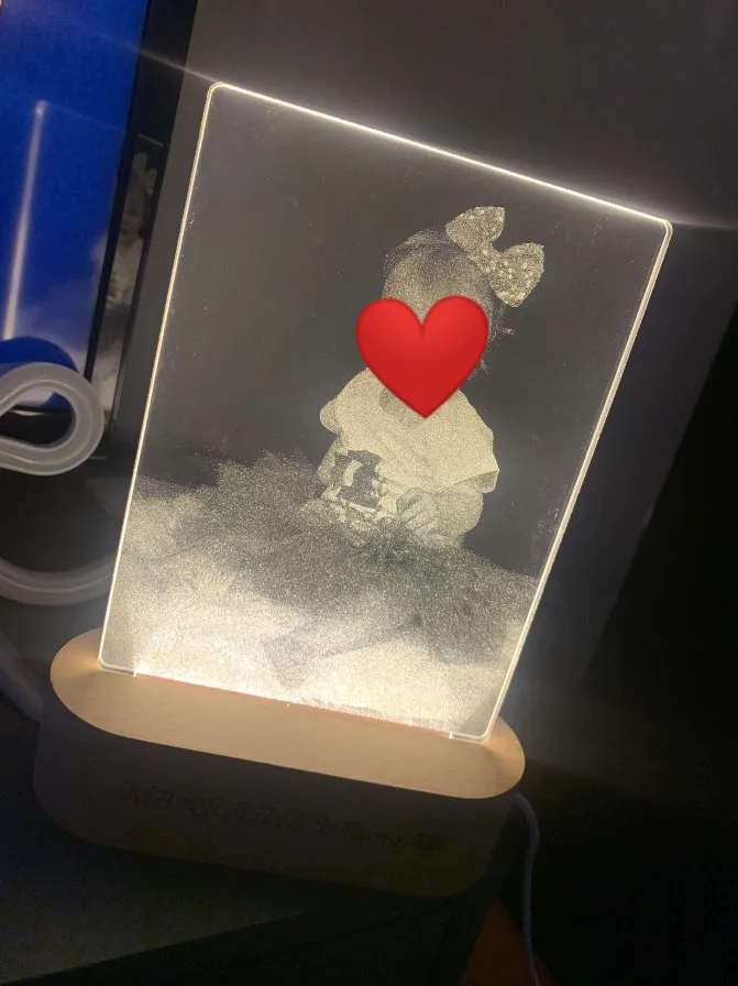 Tardo mucho en llegar, de hecho más de lo previsto al hacer la compra, menos mal que lo encargué con tiempo porque fue para un regalo y casi no llega. Por lo demás es muy bonito, la foto se ve muy tenue con la luz apagada y cuando se enciende se ve más definida y con detalle. La foto igual que el original, el grabado en la madera muy bonito y los cambios de color van genial así como el regulador de brillo. Llegó bien embalada y sin ningún rasguño. El regalo gustó mucho, el único pero es el tiempo de envío.
