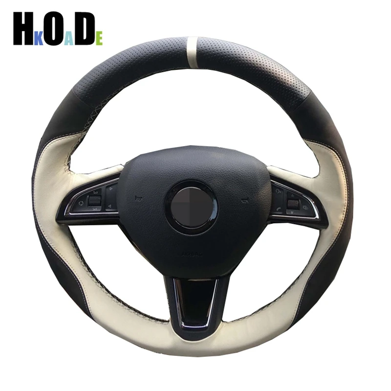 Шитье вручную из натуральной кожи для Skoda Octavia чехол рулевого колеса автомобиля Rapid Spaceback 2017 Fabia 2016 2016 (3-спицевая), 2017