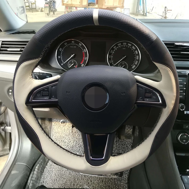 Перед покупкой, пожалуйста, проверьте и сравните рулевое колесо вашего автомобиля с изображением на картинке. (наши чехлы для рулевого колеса изготовлены по индивидуальному заказу, если есть какая-либо разница, они не подойдут)! Это чехол для руля, а не для руля! Этот продукт подходит для Skoda Octavia 2017 Rapid Spaceback 2016 Fabia 2016 2017