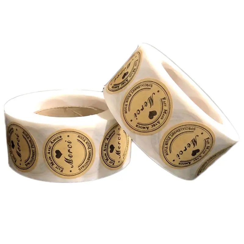 500 штрулон Kraft Merci французский Спасибо Этикетки Наклейки конве...