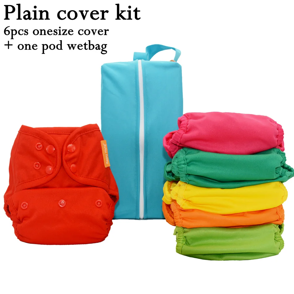 WizInfant OS детский тканевый комплект для подгузников с 6 однотонными чехлами Plus One Pod Wetbag