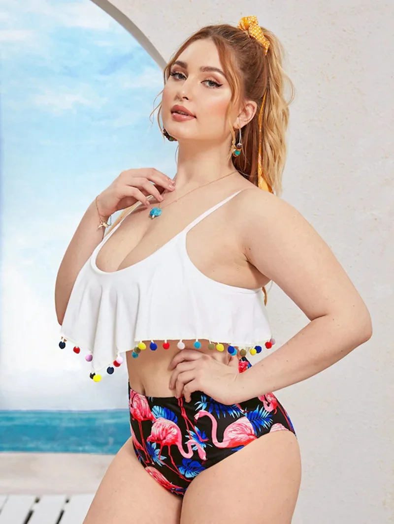 Бикини с высокой талией размера плюс, женский купальник с оборками, купальник с кисточками, купальник с высокой талией, милый бикини, сексуальный бикини 2020