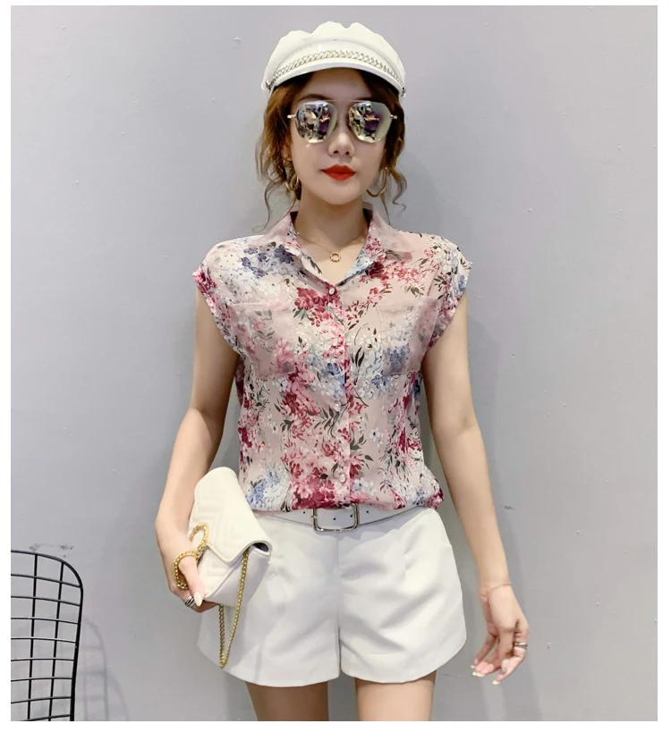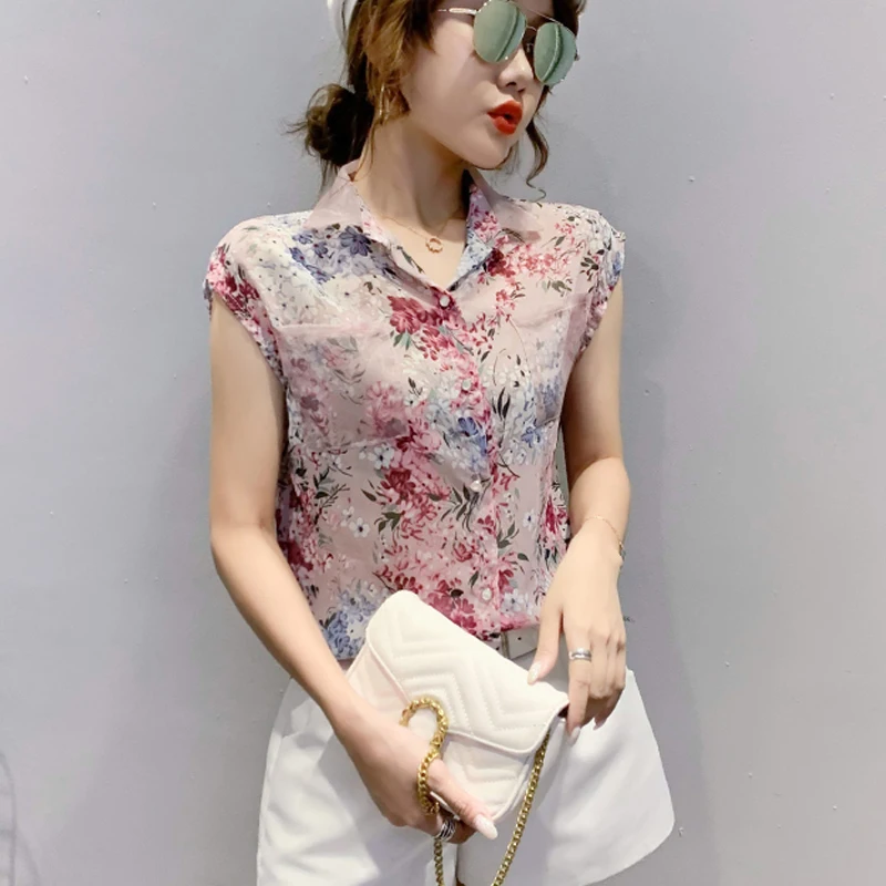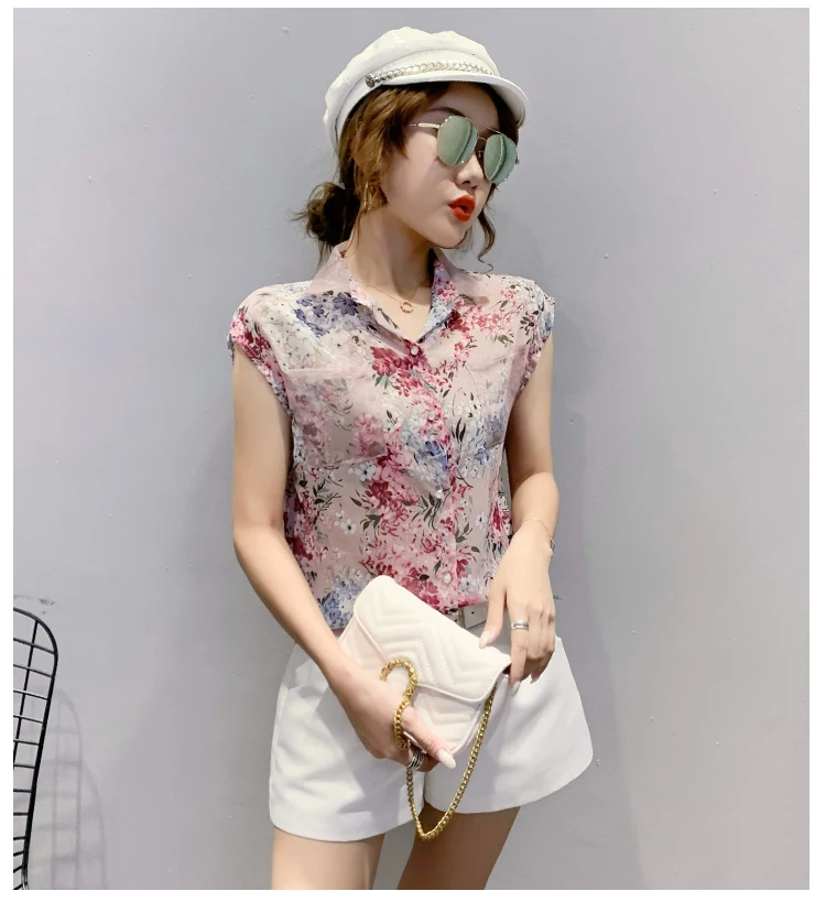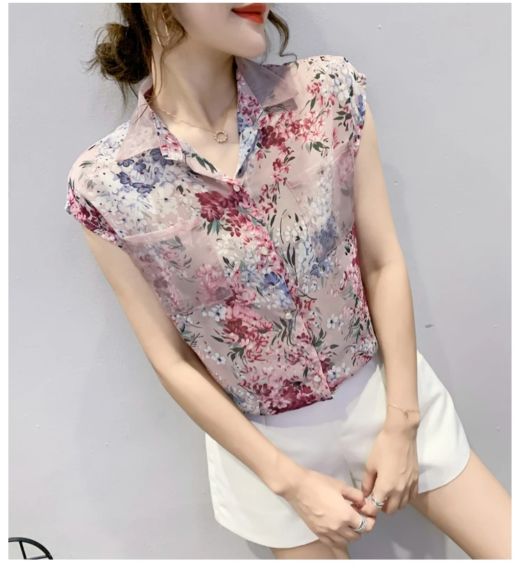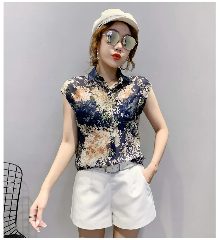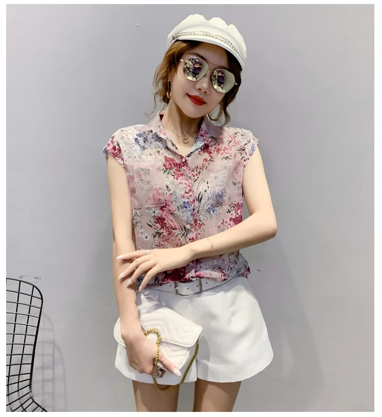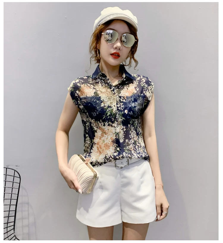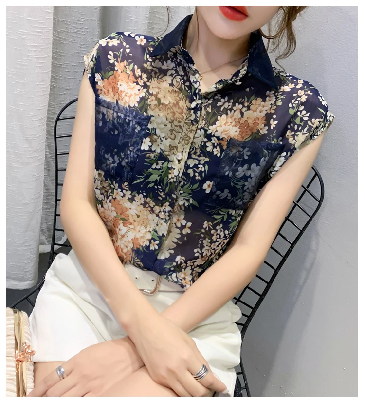Женская шифоновая блузка с цветочным принтом, без рукавов